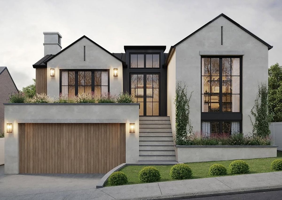 exterior shot keep the structure and window dimensions same with the drawing