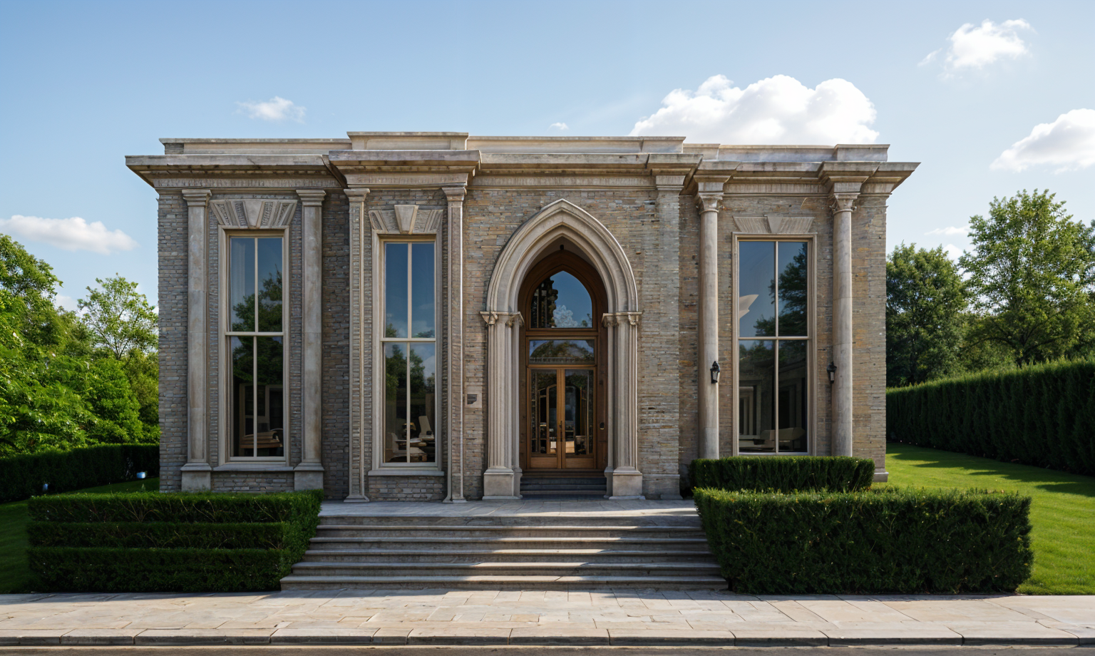 remove red tree replace front arch by strait overhung keep the original color