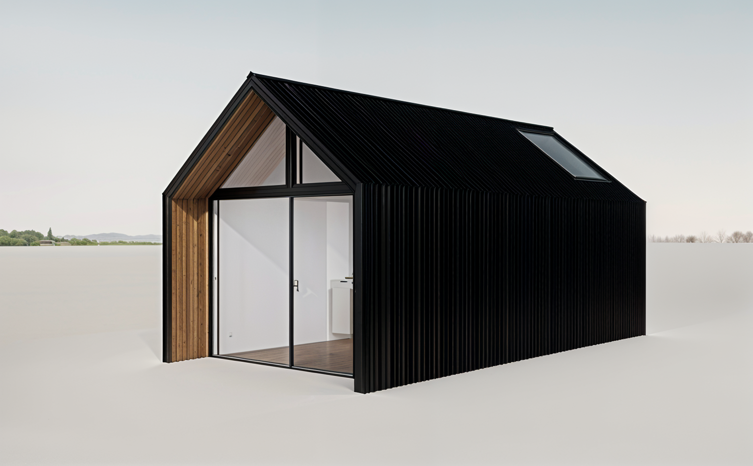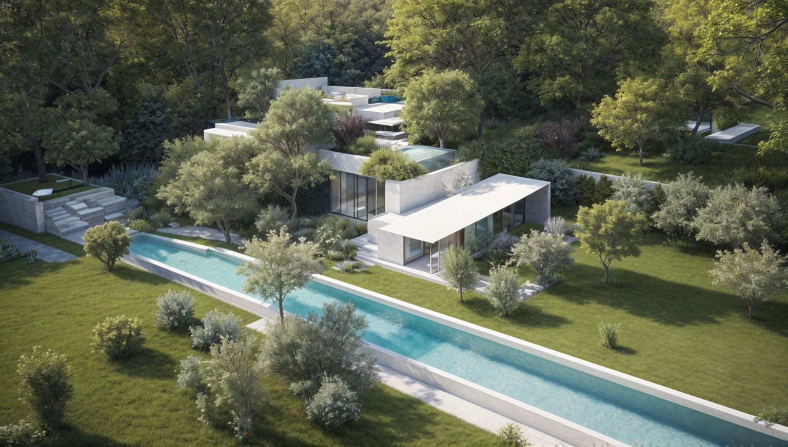 generate a beautifully rendered image of a charming open air porte cochere with a light oyster fa ade featuring light navy blue window shutters columns have brick bases the roof is part dark gray shingles and part silver metal roof has many exposed rafter ends and exposed rafters underneath and the frames around the windows and doors are crisp white surround the home with lush green hedges vibrant shrubs and a well maintained lawn with a driveway curving up to the opening the sky is a clear bright blue creating a warm and inviting atmosphere the scene should be rendered with soft lighting capturing the tranquil ambiance of a peaceful suburban setting