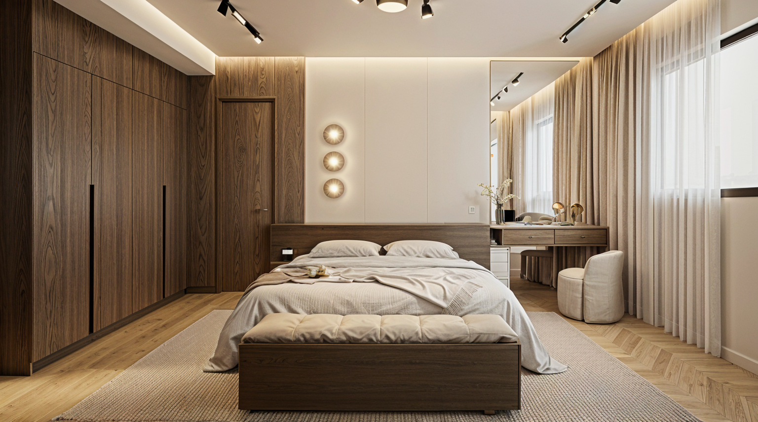 convert this floor plan into a minimalist isometric 3d view of a full house show the space from an elevated angle with furniture walls and details visible use the attached floor plan image as a strict spatial and geometric reference generate a 3d architectural interior rendering of an ultra luxury walk in closet suite organized around a central open air courtyard scale ceiling height critical the space has a significantly elevated ceiling height reading as double height or more creating a grand airy architectural volume the closets are contained within a large open interior envelope not subdivided into standard height rooms the feeling should be closer to a gallery or pavilion than a conventional interior millwork concept the pink curved elements represent freestanding architectural millwork volumes not perimeter walls these millwork elements are full height but detached standing as sculptural objects within the larger space maintain the exact curved geometry and placement shown in plan the millwork does not touch the ceiling uniformly it reads as intentional architectural pieces within a taller volume islands the blue elements are freestanding islands at countertop height positioned exactly as drawn islands remain visually light and subordinate to the millwork volumes courtyard the central courtyard remains open to sky lushly planted with palms and greenery large glazed openings create a continuous visual connection between interior and exterior do not alter the plan no added walls no simplified curves no symmetry corrections respect circulation paths proportions and spacing exactly as shown lighting atmosphere abundant natural daylight from the courtyard indirect architectural lighting integrated into millwork soft shadows emphasizing scale height and curvature camera output wide angle interior perspective emphasizing height and spatial depth eye level camera photorealistic architectural visualization with a calm refined gallery like mood use the same furniture as shows on the plan do not change the orientation of the floorplan
