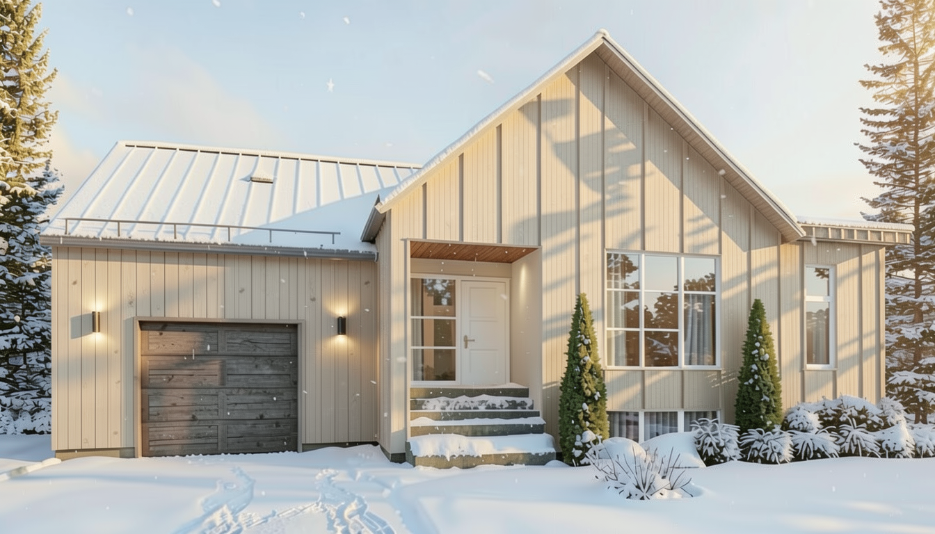 modernist exterior shot make this image more photorealistic architecture