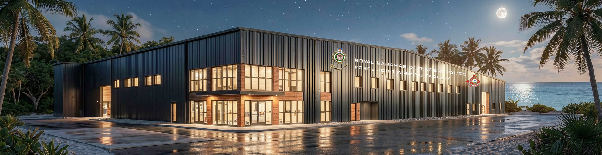 remove the ocean and the sand make it look more parking spaces with painted stripes where the water is in the background make it into airport runway as this building is support to the airport in the bahamas