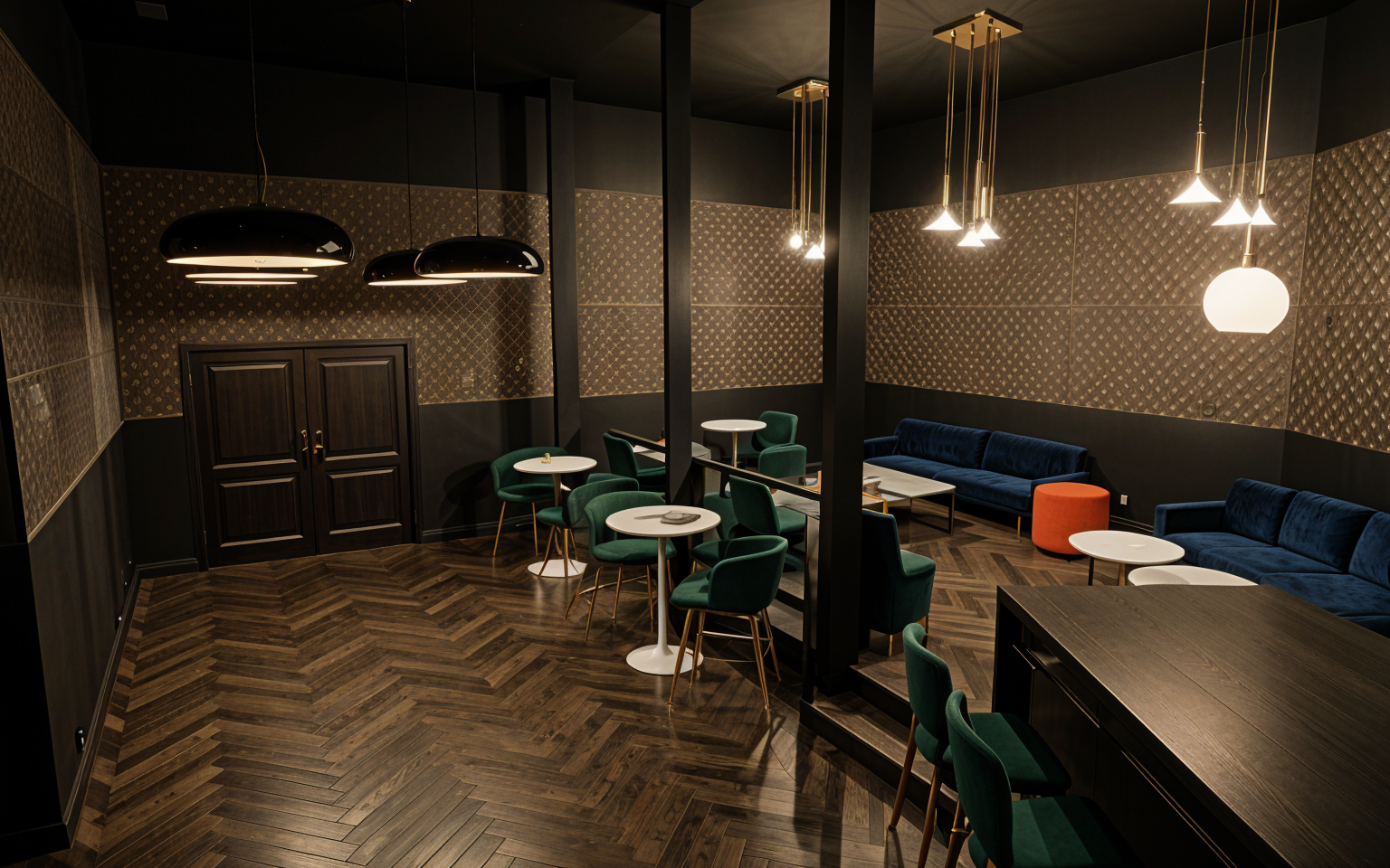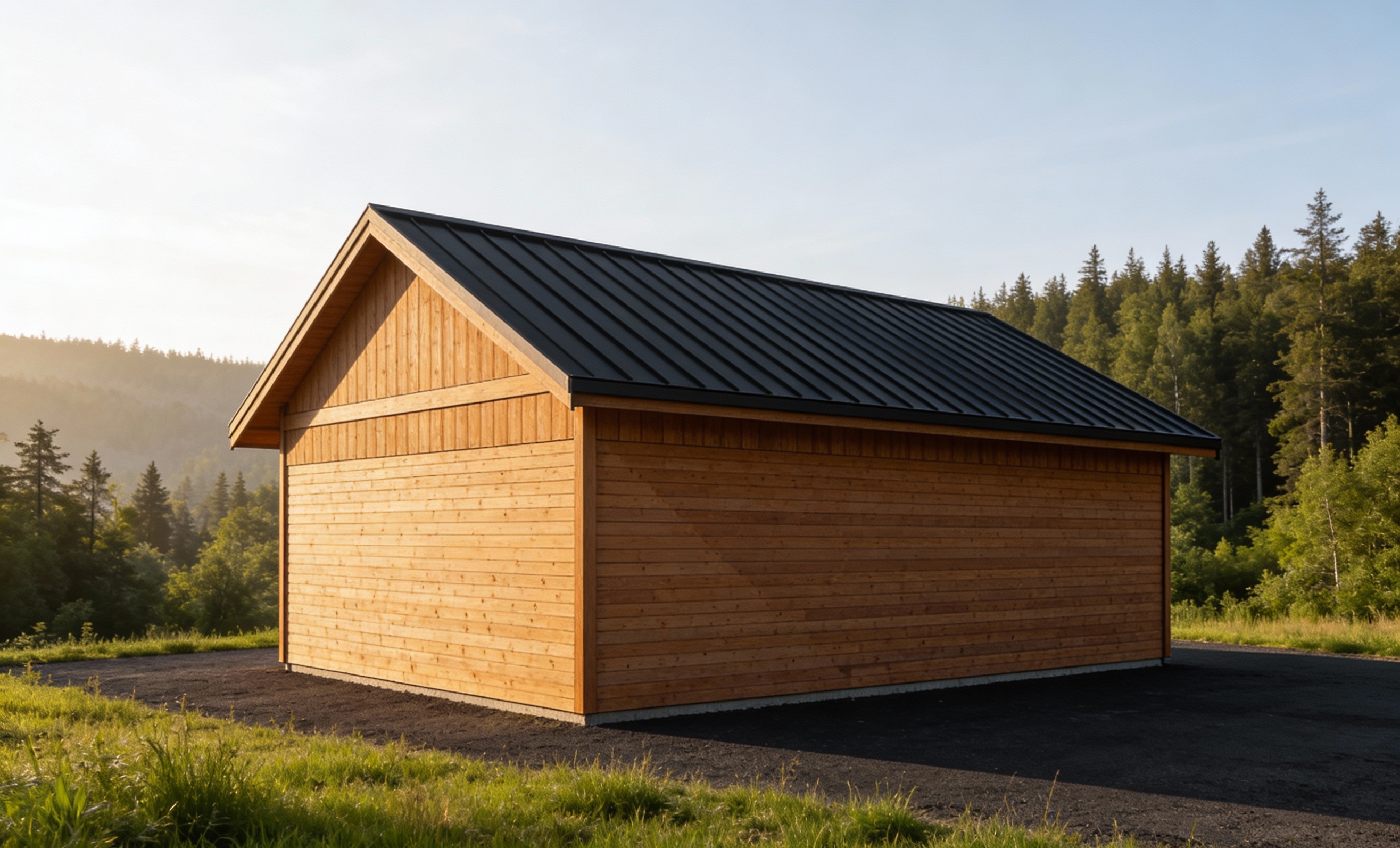 indoor playground lit up through glass window evening sky spaced out decorative grass and boulders landscaping add a couple cars to parking lot