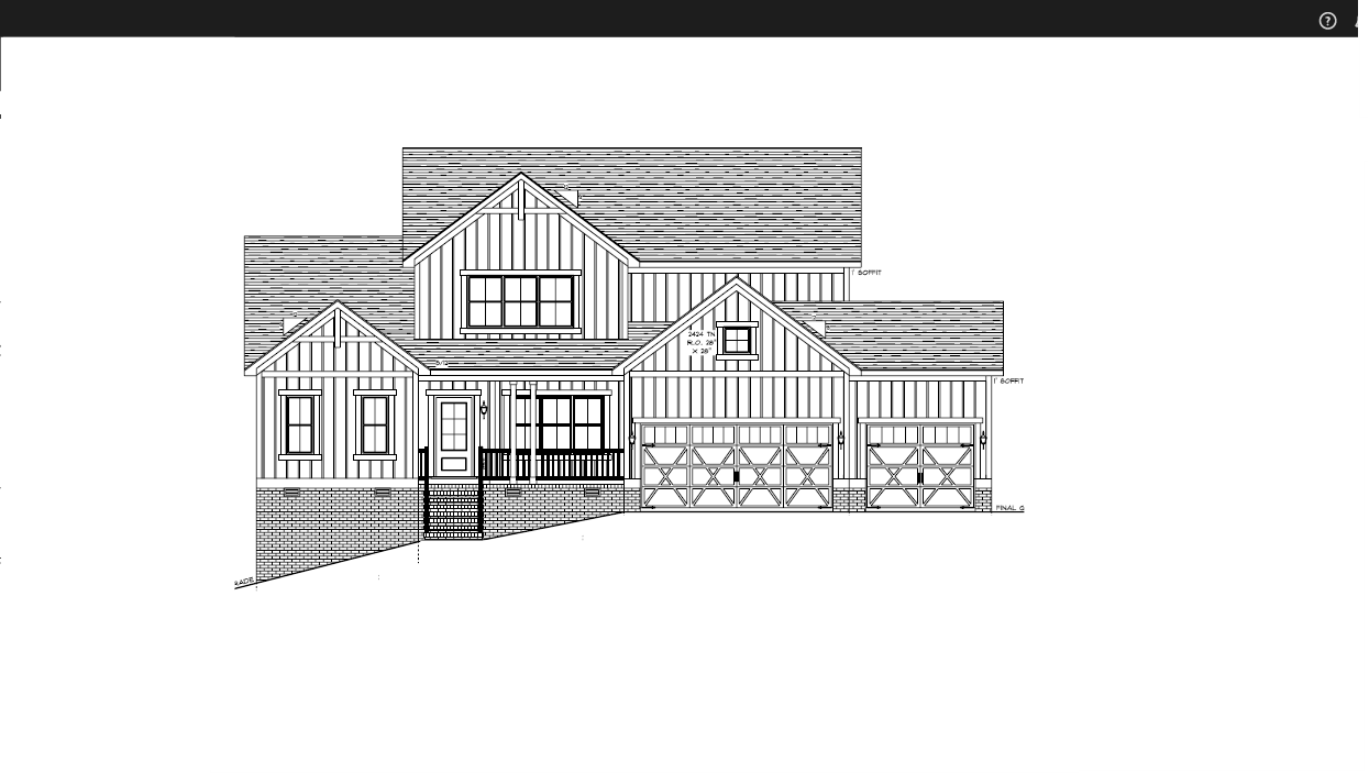make as photorealistic as possible while keeping textures the same as selection professional landscaping in a lightly wooded scene with good lighting match materials to plan sw6073 perfect greige vertical siding black gutters black windows black trim medium brown brick foundation black roof