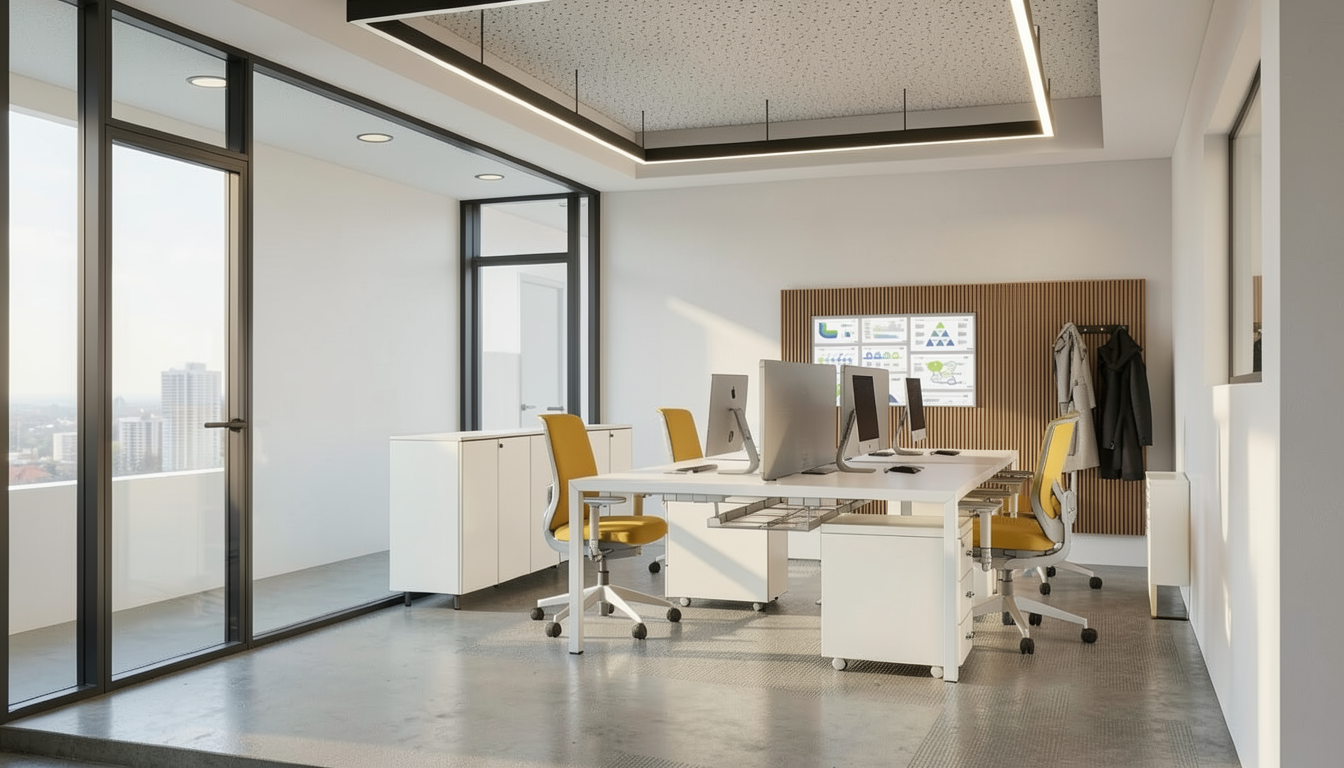 create a highly realistic render of a narrow bathroom corridor with a calm warm and refined atmosphere the design feels minimal elegant and high end with a soft natural palette and balanced lighting on the left side there are full height sliding doors with wooden frames and panels incorporating frosted glass the glass has a diffused translucent quality that softly obscures the interior allowing light to pass through while maintaining privacy on the right side there are two doors with frosted glass panels each door features a vertical linear wooden handle minimal and integrated into the design soft natural light filters through these doors from the adjacent space creating a gentle diffused glow that enhances the atmosphere at the end of the corridor there is a floating vanity the base is made of light natural wood with a minimal and clean design the countertop is in natural soft beige travertine with a subtle texture and matte finish the sink is integrated into the countertop and the faucets are wall mounted in a clean white finish adding a refined and contemporary touch below the vanity there is a recessed area filled with natural white pebbles adding an organic and spa like element to the space behind the vanity the wall is finished with natural stone in a raw texture creating contrast with the smoother surrounding surfaces a full width mirror enhances the depth of the space the walls are coated in light beige microcement creating a seamless and soft background the floor is in a light natural stone tone enhancing the calm and cohesive aesthetic the lighting is soft and diffused combining recessed ceiling spotlights with subtle natural light filtering through the frosted glass doors creating minimal shadows and a warm luxurious ambiance ultra realistic render high resolution premium materials interior design magazine photography style