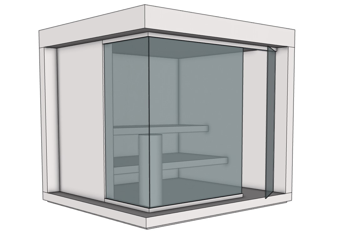 render the provided sauna model as a premium eclipse black outdoor sauna model integrity absolute keep the exact original geometry proportions dimensions and layout of the provided model do not modify the shape volume thickness construction logic or configuration no resizing no stretching no redesign all walls roof base glass panels door position benches and internal layout must remain identical exterior design eclipse black exterior cladding in deep matte black finish surface should appear premium smooth and architectural blackened wood dark composite look subtle panel segmentation allowed only if it follows the existing model geometry no visible wood grain on exterior no color variation uniform black tone roof flat roof in matte black seamless and minimal clean edges no overhang changes no added elements glazing large corner glass panels exactly as in the model glass must be slightly tinted in neutral gray tone clear high quality architectural glass no reflections added artificially interior interior walls ceiling and benches in light thermo wood thermo aspen thermo alder look horizontal wooden slats with clean modern spacing benches in two levels exactly as in the model no change to bench thickness height or placement lighting soft indirect led lighting inside the sauna warm white tone approx 2700 3000k lighting should feel integrated and realistic no dramatic glow no decorative effects base and floor sauna base remains exactly as modeled no floating effect sauna must sit naturally on the ground plane rendering style photorealistic architectural render neutral studio lighting soft realistic shadows no cinematic mood no artistic interpretation restrictions do not add any elements that are not part of the model do not add surroundings furniture people plants or accessories do not change materials beyond what is described do not reinterpret the design goal create a clean premium eclipse black sauna render that strictly follows the provided model