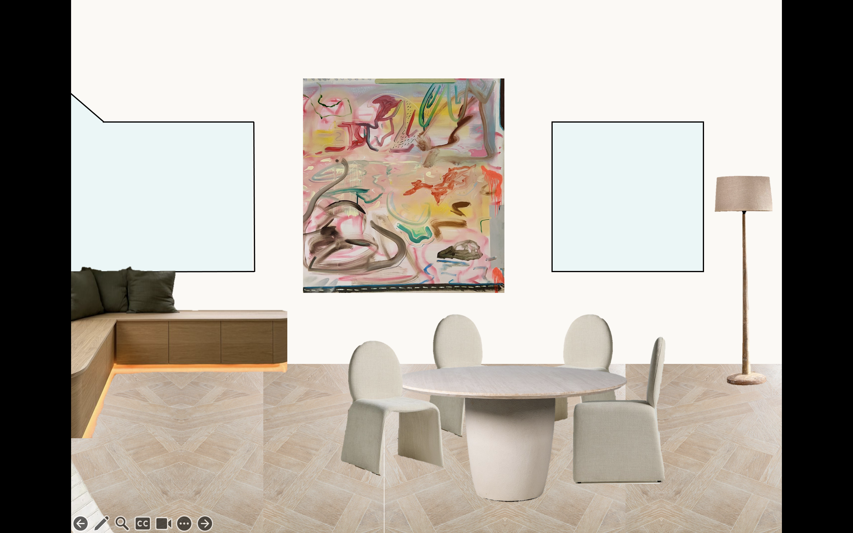 maintain the exact artwork the two blue boxes are windows set in ireland the floor is versaille parquet