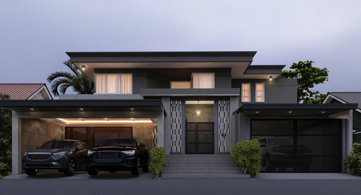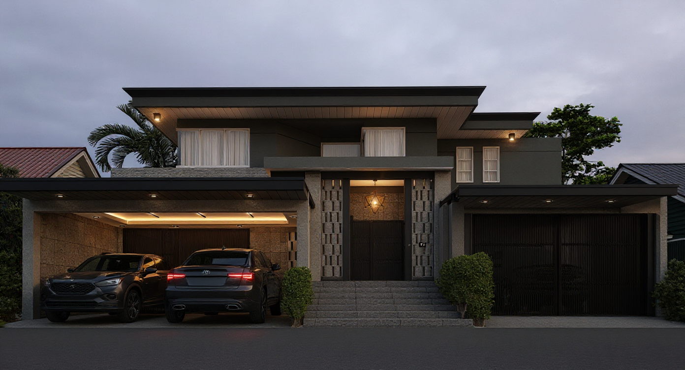 render this revit screenshot into a photorealistic bathroom scene matching the reference image exactly in materials lighting color tone textures and realism keep the geometry from the input image floating vanity with two vessel sinks matte black faucets two oval mirrors frameless shower glass black framed window shower set on left wall and minimal modern layout replace all tile materials to match the reference exactly large format more light grey marble tiles with subtle white veining on floor and all walls including the shower wall apply the exact stone texture scale gloss level and soft reflection shown in the reference image the niche shower glass ceiling and grout lines must match the reference use realistic soft natural daylight entering from the window with the same brightness color temperature and shadow softness as the reference apply global illumination soft bounce light and accurate material shading to replicate the reference s overall mood match the reference s details matte black shower fixtures matte black mirror frames white matte vessel sinks with realistic shadows warm natural wood vanity finish floating toilet design if visible ensure the glass refraction ao and micro reflection quality follow the reference exactly camera angle must follow the input image but lighting texturing shading and realism must match the reference image 100 produce an 8k photoreal output with leica full frame optics