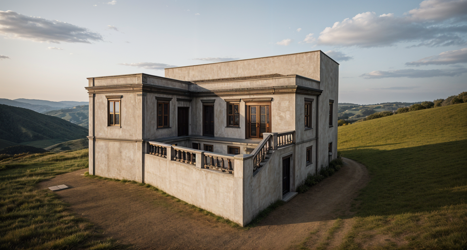 neoclassical exterior shot change numbers to 2468 change lights to hanging lanterns architecture