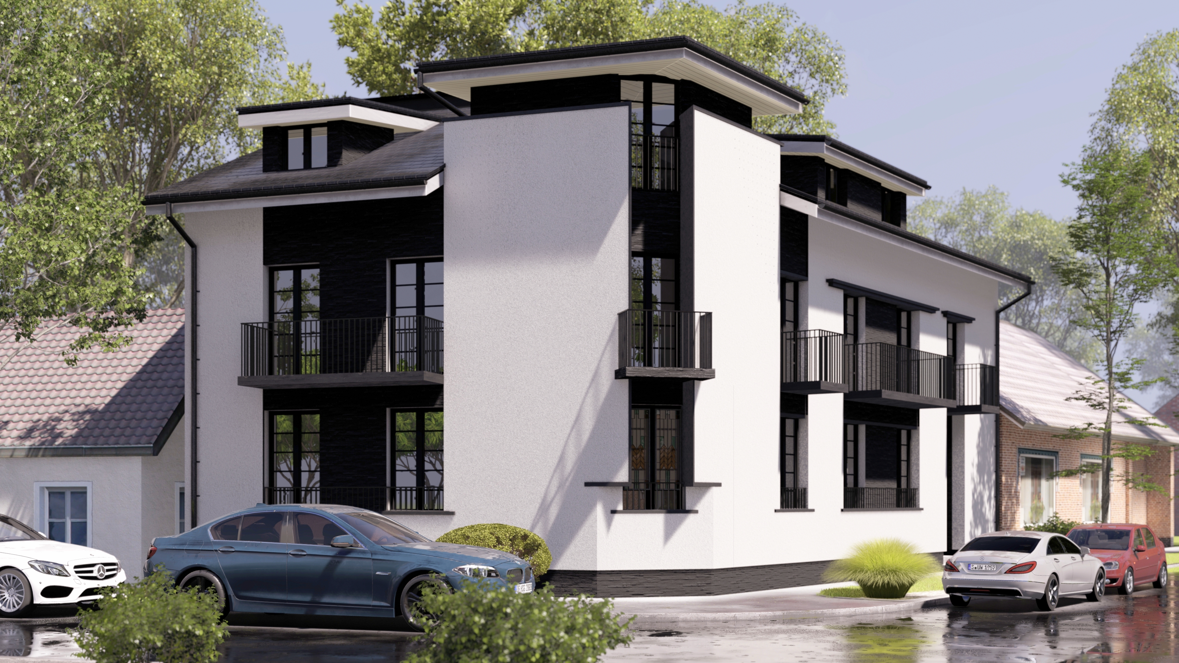 minimalism exterior shot sunny day beautyful clouds autumn atmosphere keep fassade colors architecture