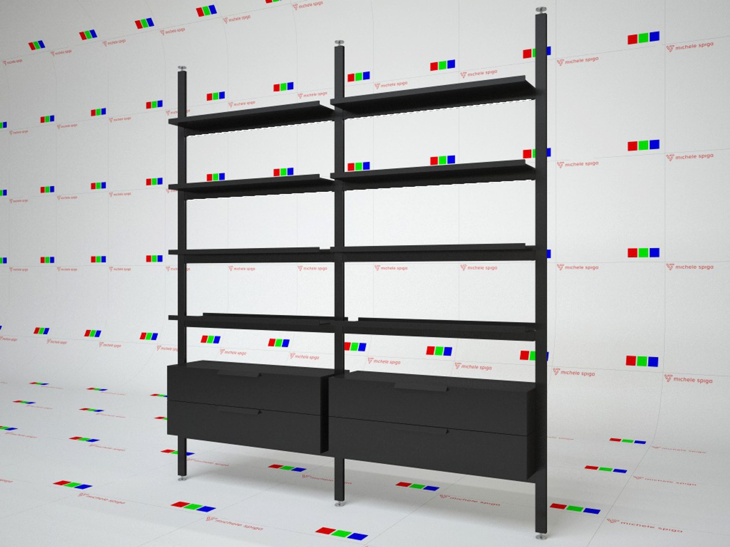 exterior shot setze dieses regal hinter das sofa erg nze ein modul damit es drei sind und ndere die befestigung zur wand statt der decke