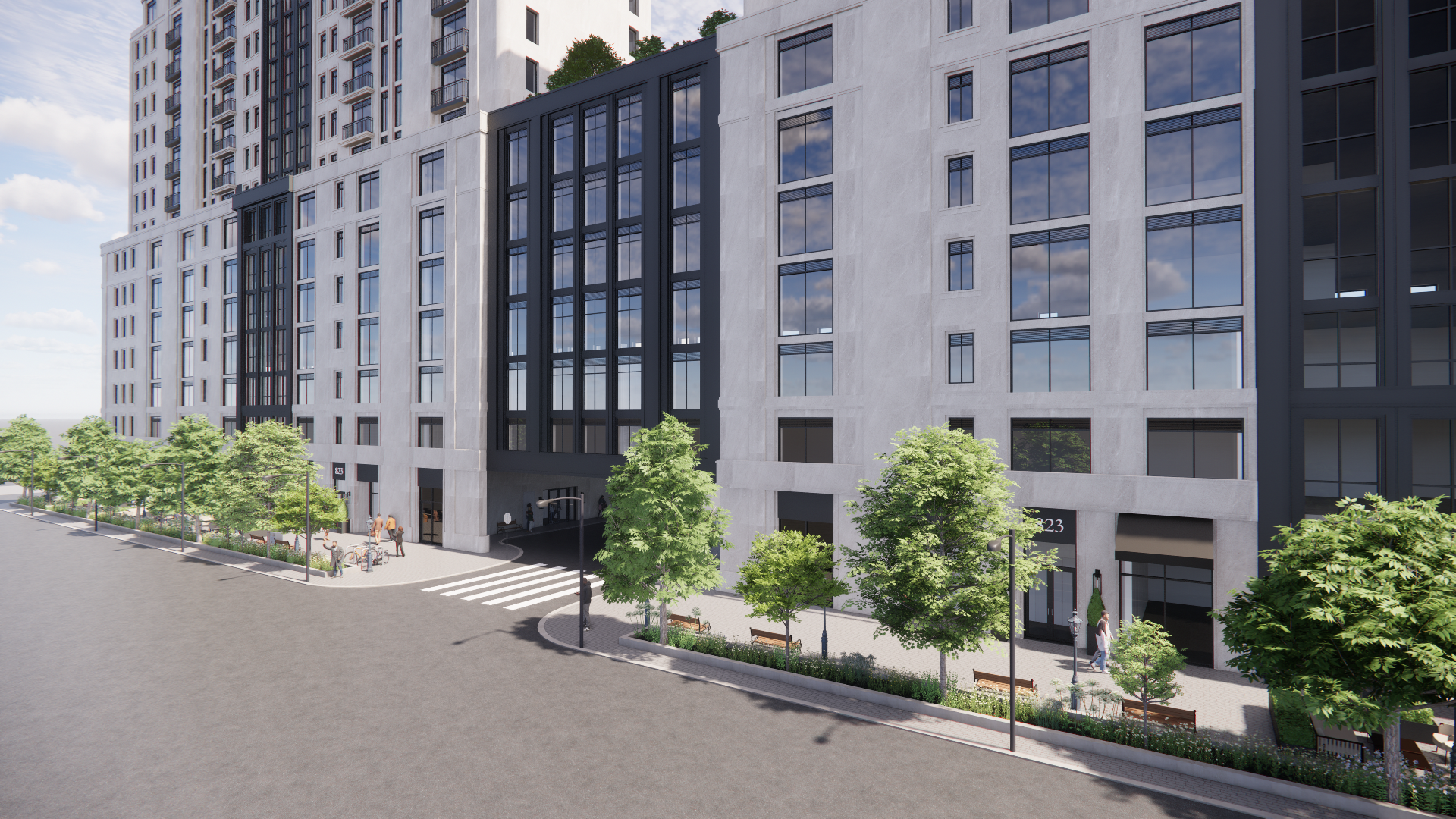 make a highly realistic rendering with limestone smooth finish and real glass