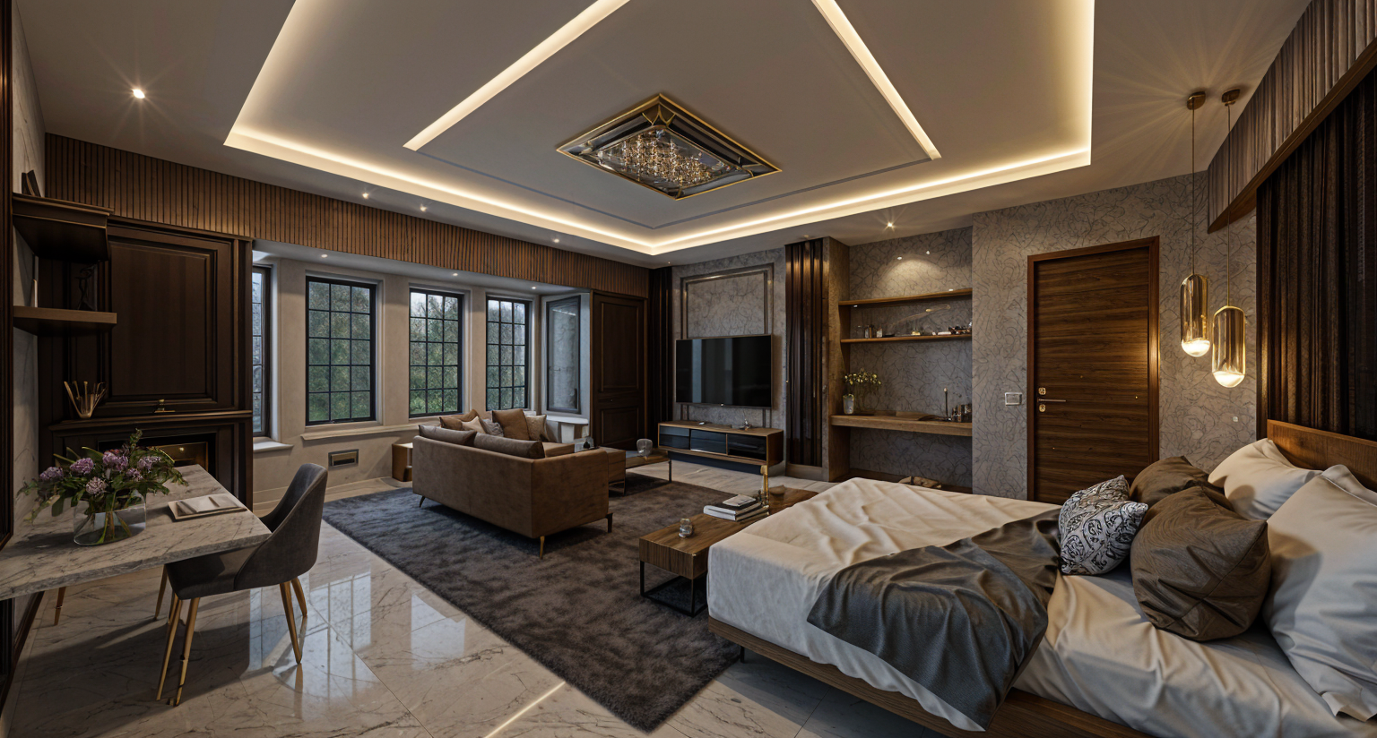 exterior shot perspective view of a modern building with wavy timber batten vertical louvres heavy concrete vertical divisions with vertical planting hanging down glass to lower half of the buildng