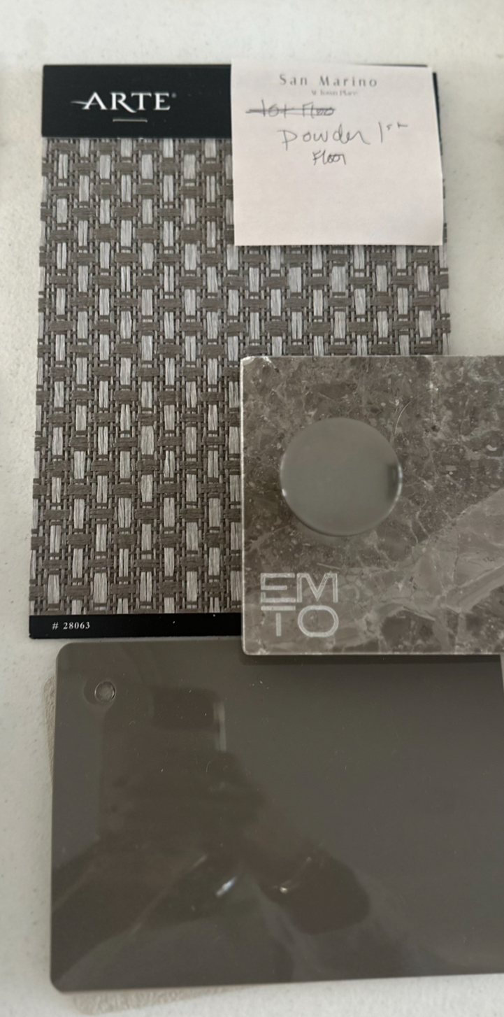 draw a floating 24 vanity with a white round vessel sink top material is the wallpaper the countertop is the middle material with polished nickel single faucet bottom material is the cabinet color no hardware finger grip