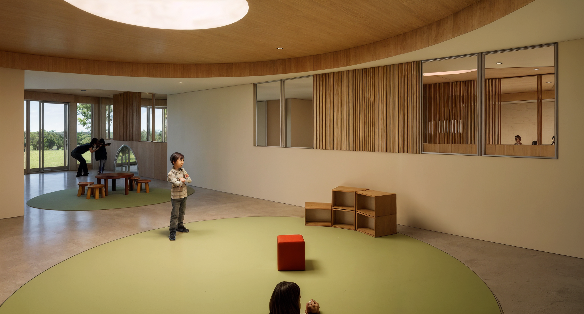 enhance details remove the boy in the middle and add a different child facing the other way