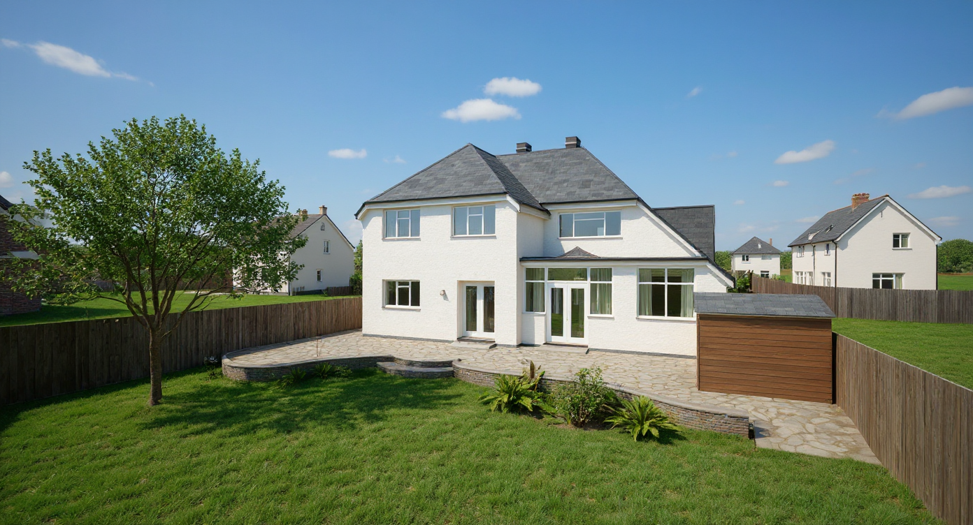 the roof is in light beige color and facade is in white color