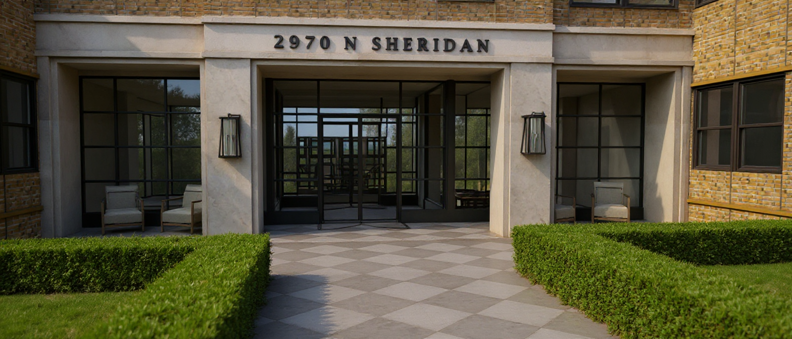 generate lobby interior with soft light keep exterior architecture the same add hydrangea inside hedge