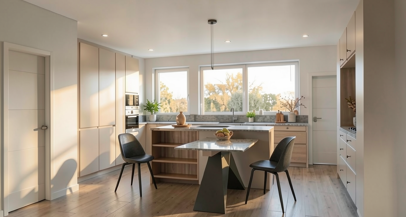 enhance the image while preserving the original architectural design and composition add realistic bar alcohol bottles on the shelves typical of a professional bar station on the middle shelves place classic well known liquor bottles whiskey vodka gin rum tequila arranged naturally but clean and organized on the upper shelves add more premium liquor bottles in a symmetrical and refined arrangement these bottles should look elegant slightly more distinctive in shape and label design but still realistic and not exaggerated ensure all bottles have correct proportions realistic glass thickness subtle reflections and accurate liquid transparency labels should look believable but not overly sharp or brand focused slightly improve material rendering across the image enhance realism of wood metal glass and fabrics with more natural texture response balanced reflections and accurate light interaction avoid over sharpening or artificial hdr effect make the light coming from the ceiling void slightly more atmospheric and diffused add soft volumetric light effect very subtle glow and gentle light falloff to create depth without becoming dramatic keep it refined architectural and realistic maintain photorealism avoid cinematic exaggeration strong color grading or excessive contrast keep everything elegant balanced and believable