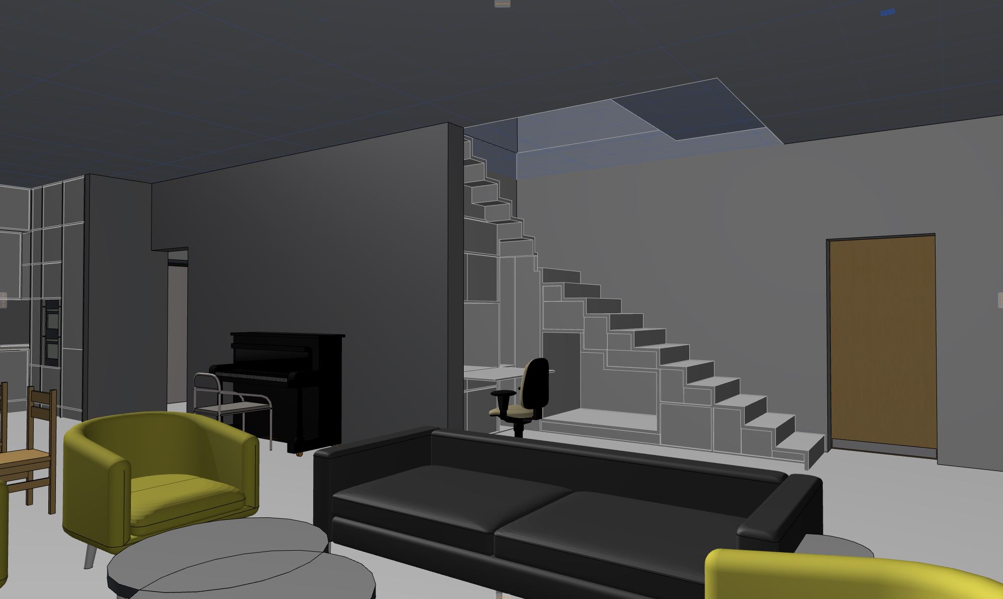 pritaikyti pateikt stilistikos vaizd estetik mano 3d laiptin s ir gretimos erdv s modeliui i laikyti tiksli laipt geometrij pakop proporcijas ir konstrukcin logik integruoti minimalistin sienin ni po laiptais su ilta linijine led ap vietimo juosta ni os vir uje ni os vidus nat ralaus ilto med io apdaila su subtilia tekst ra ni oje mink tos tekstilin s pagalv l s nat rali em s ton matinio audinio ant pakop rengti minimalistinius metalinius tur klus ploni juodi metaliniai strypai tvirtinami tiesiai pakopas su velnia u formos apa ia ritmi kai kartojami per vis laiptin s ilg tur klai matinio juodo metalo vir uje iltos medienos porankis visos grindys pilnai dengtos vientisa kilimine danga be per jim ar kit grind dang kilimin danga neutralios pilk vai sm lio spalvos subtilios tekst ros matin mink ta su lengvu audinio ra tu gretimoje erdv je integruoti mink tus baldus em moderni sof ir deran ius fotelius ilt neutrali ton mink tos tekstil s spalv palet ilti neutral s tonai nat ralios med iagos rami eleganti ka atmosfera ap vietimas iltas netiesioginis pabr iantis tekst ras ir erdv s gyl fotorealistin kokyb realisti ki e liai vari perspektyva modernus skandinavi kas japandi interjero stilius be geometrijos i kraipym be papildom architekt rini element kurie n ra mano 3d modelyje