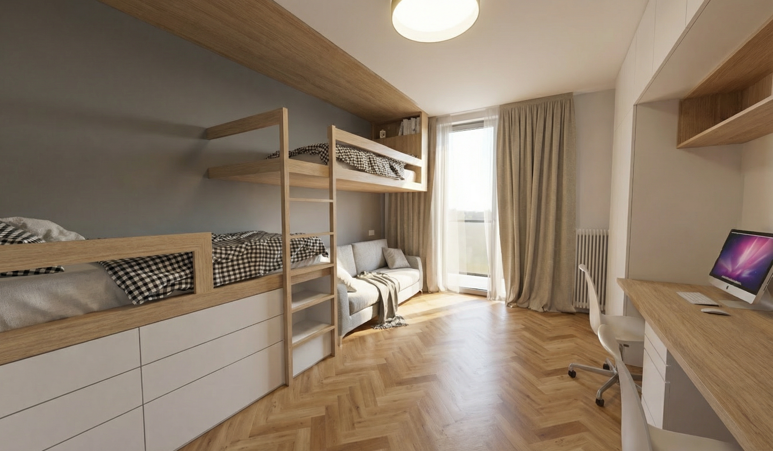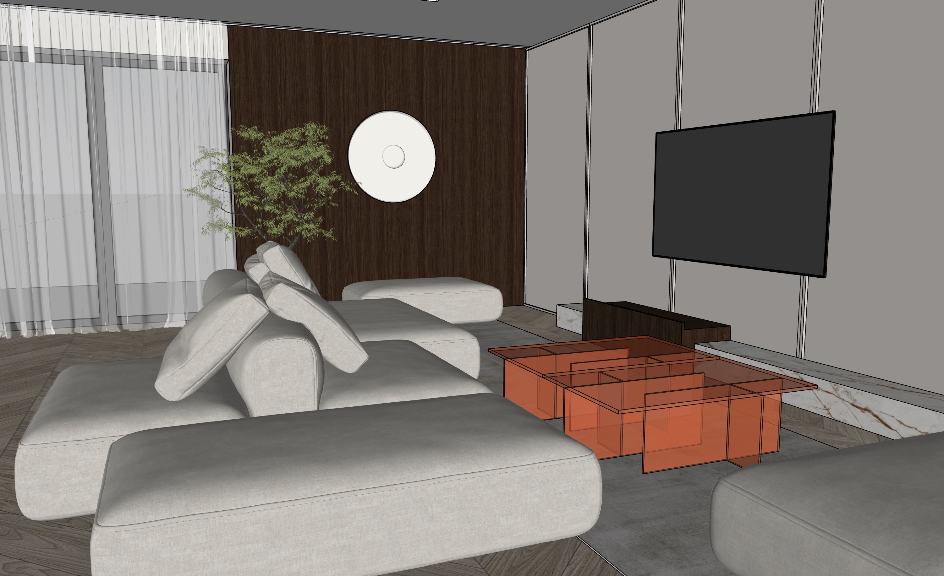 its summer afternoon outside add darker color trees outside behind the windows leave curtains closed but make them translucent turn on the wall light make it dimmed and in the color of k3000 and turn on dimmed led light in the ceiling niche