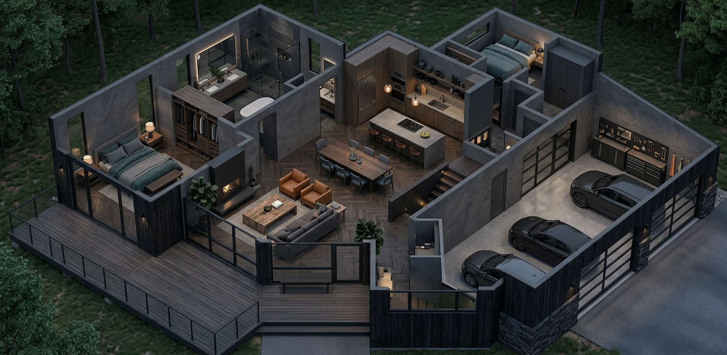 add landscaping under deck that shows boulders have stairs made of rock come off deck onto a rock patio replace post and make under deck completely enclosed with stacked rocks