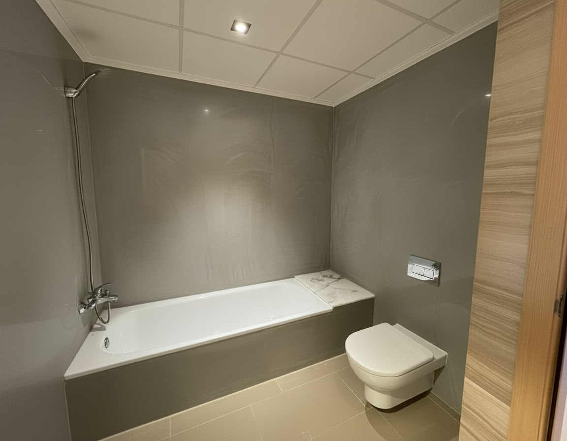 pon el suelo de microcemento continuo como el de la imagen de referencia