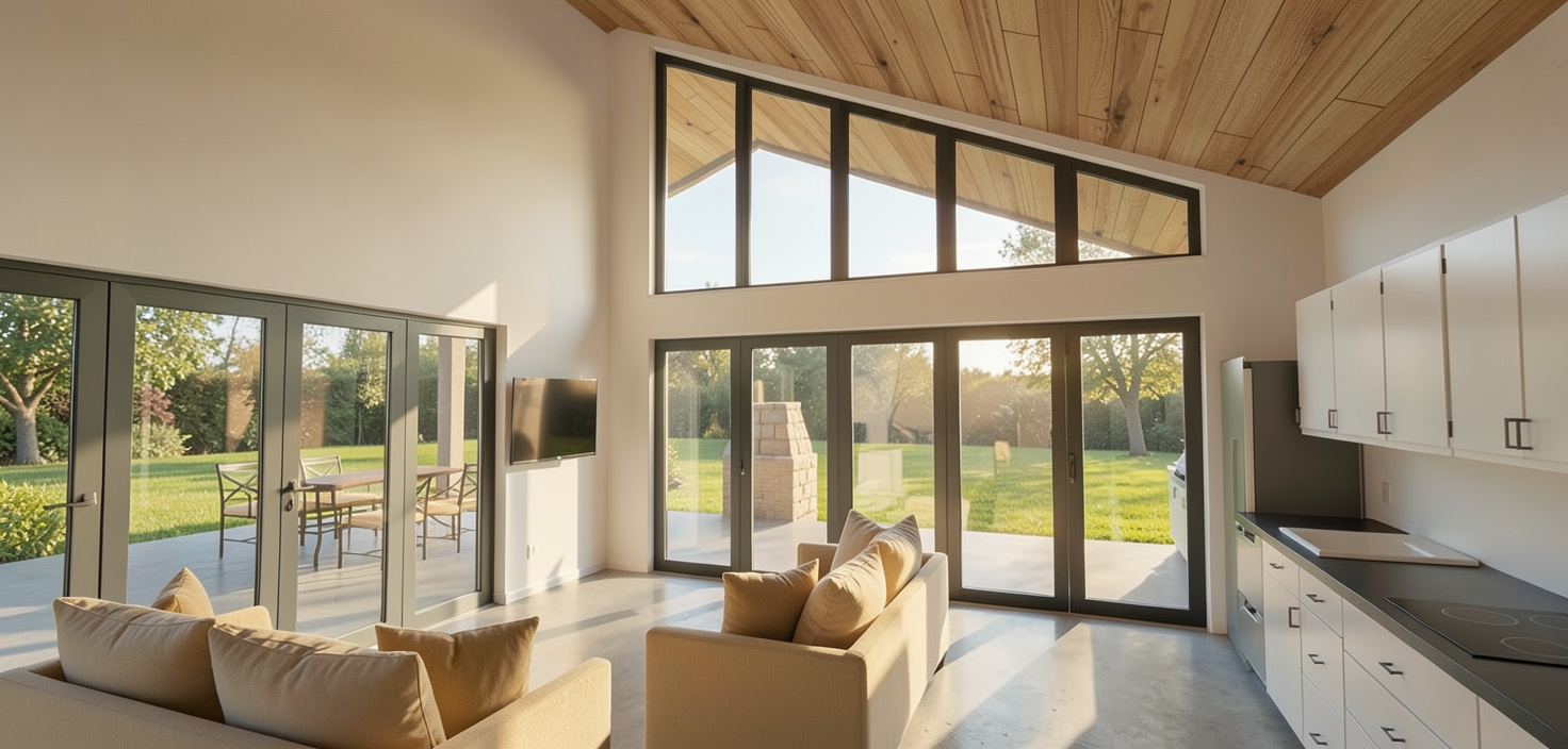 warm daylight coming through windows warm toned pale limestone floor