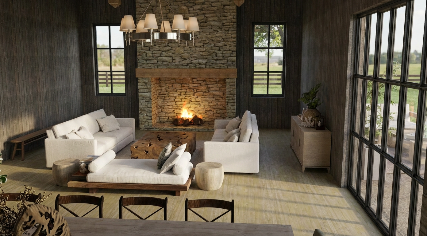 a manicured lawn layered flower beds low maintenance shrubs native plants stone pathway leading to the entrance