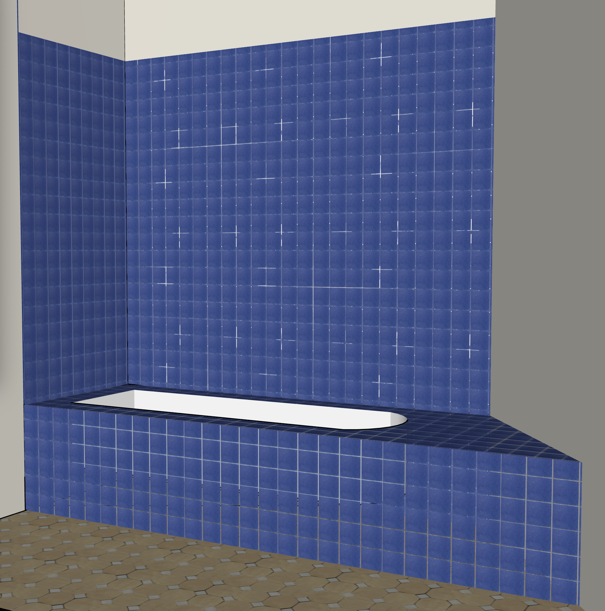 render this photorealistic lots of atmosphere look like it was taken on an slr camera artisinal hand made zellige tiles with sheen limewash texture on the other walls no artificial light no visible grout between tiles reduce the contrast