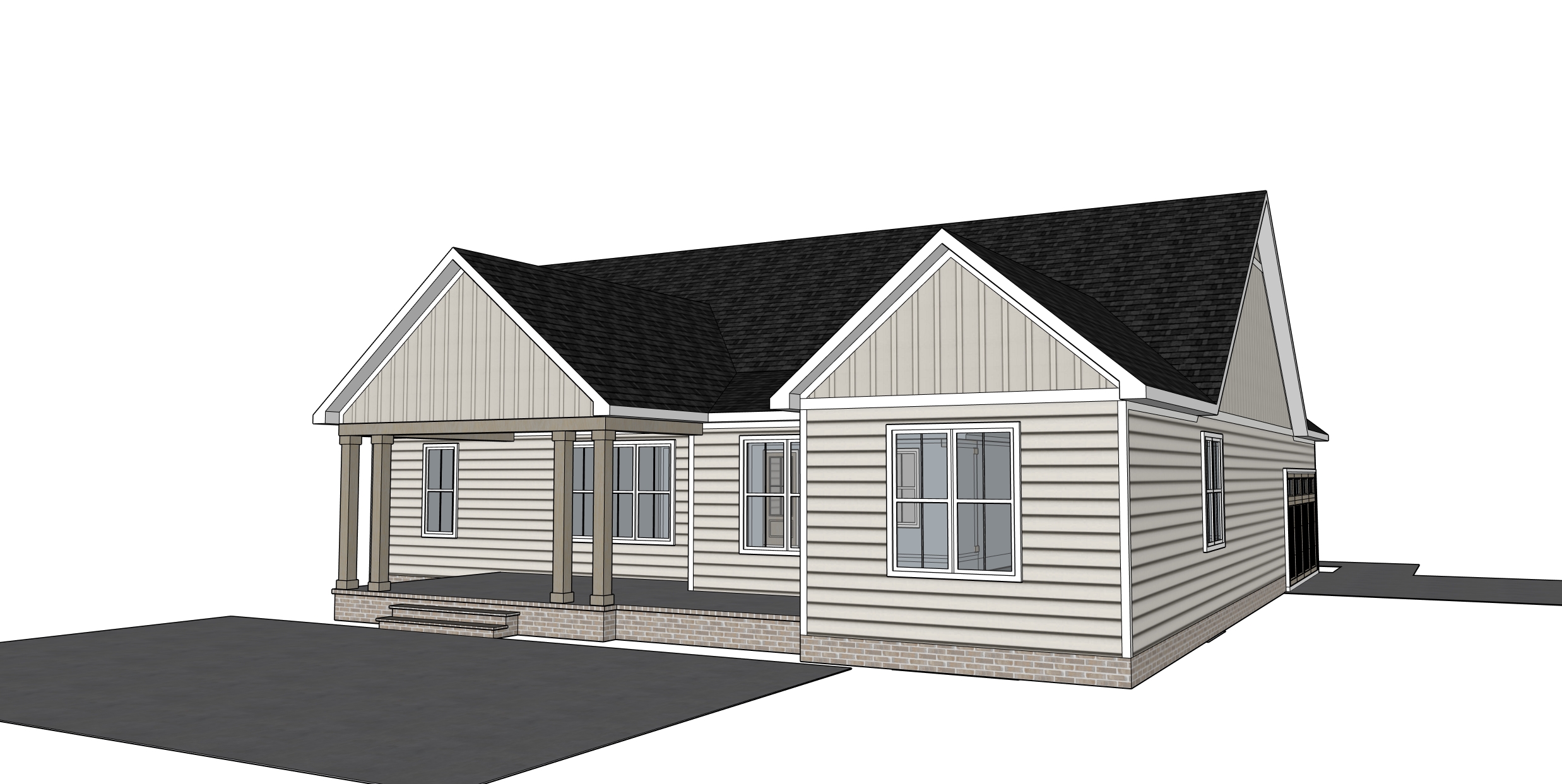 add landscaping trees in background make realistic white windows