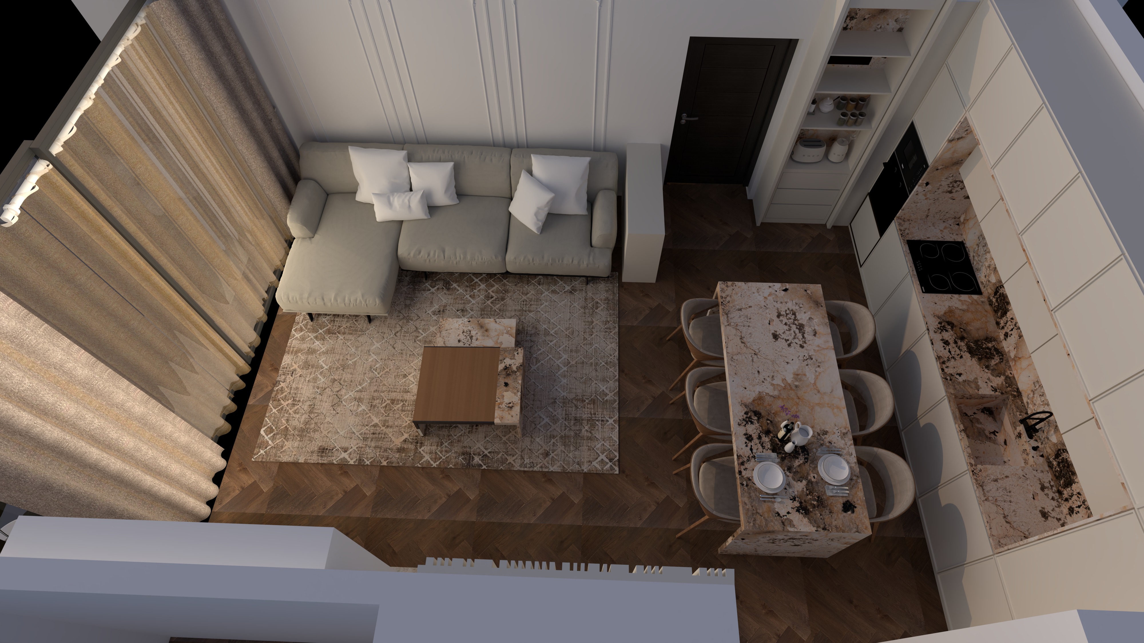 improve the lighting and overall render quality to achieve a highly photorealistic photography like result use soft natural daylight coming from the windows with correct sun orientation balanced white light neutral temperature not too warm enhance global illumination with realistic light bounces and subtle ambient shadows refine all materials to have accurate pbr properties correct scale high resolution textures realistic roughness reflection and bump normal maps stone marble and travertine surfaces should show natural imperfections slight gloss variation and depth metals brushed or bronze should have soft reflections realistic fresnel effect and subtle anisotropy glass should have clean reflections and realistic refraction without distortion increase render settings for high quality higher subdivs clean shadows minimal noise sharp but natural contrast add subtle reflections from windows onto curtains and nearby surfaces overall mood should feel natural elegant and realistic like a professional interior photography shot