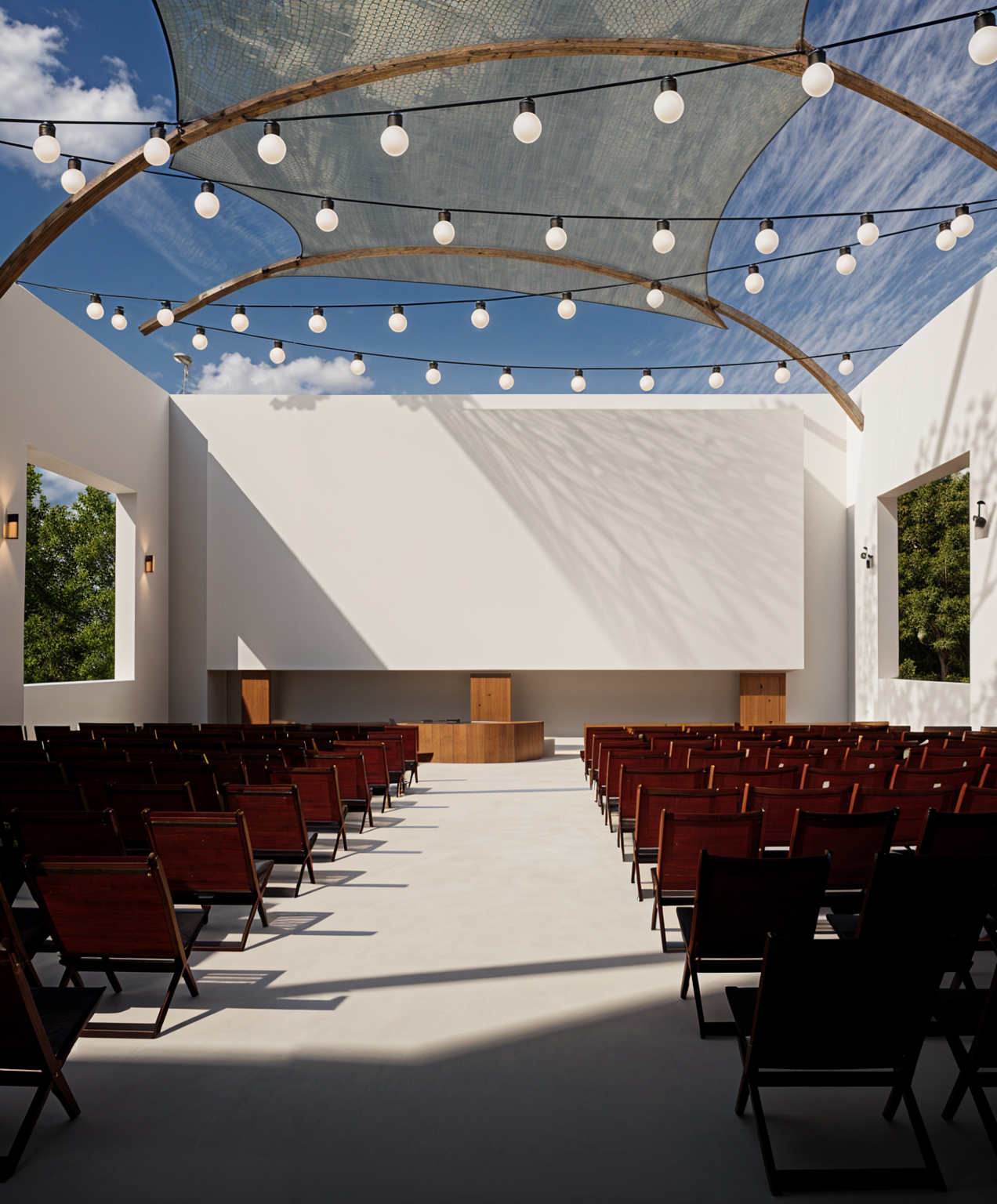 modern exterior shot with red tiles architecture