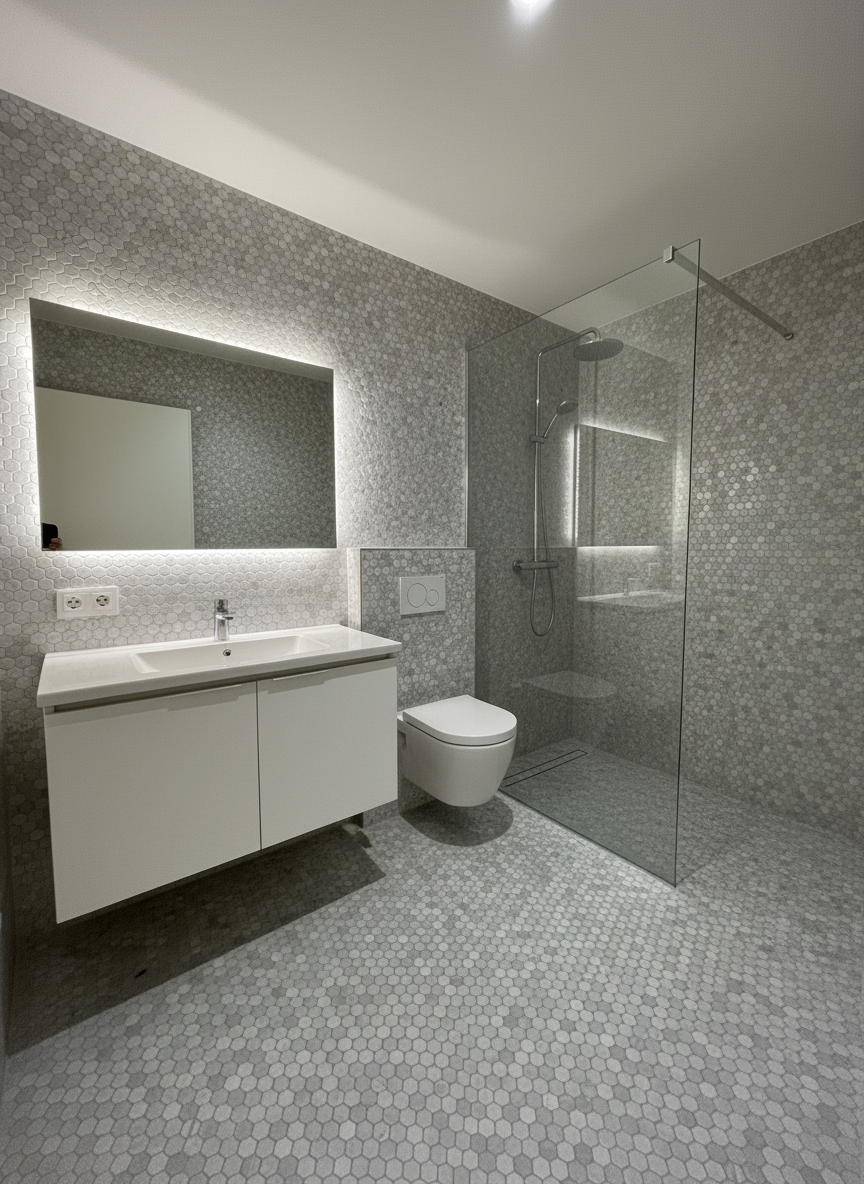 exterior shot keep same location for sink toilet and bathtub