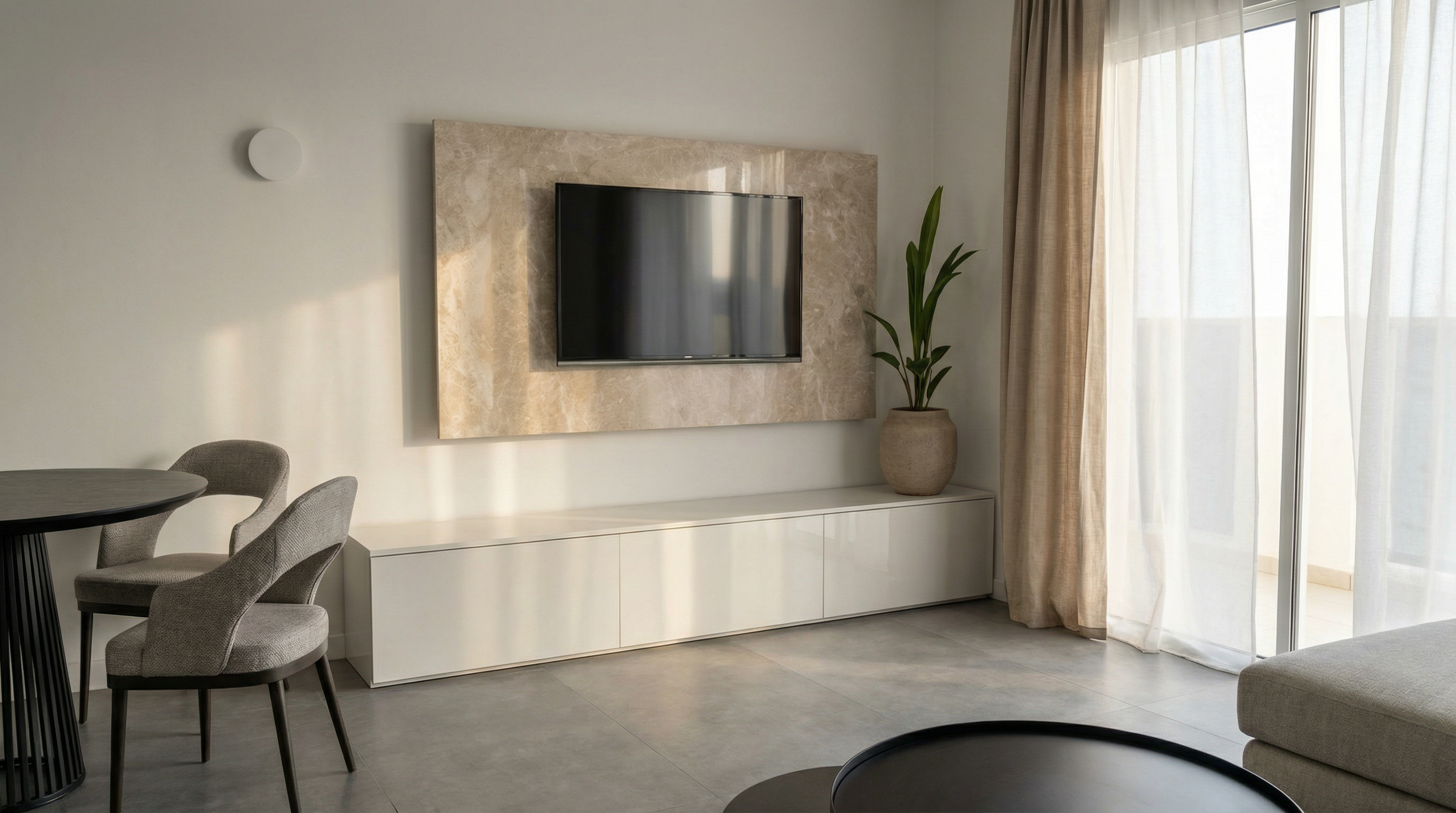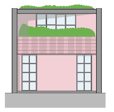 black exposed metal steel work from with red brick work infill gravel parking to the front and close boarded fence to either side no concrete plinth
