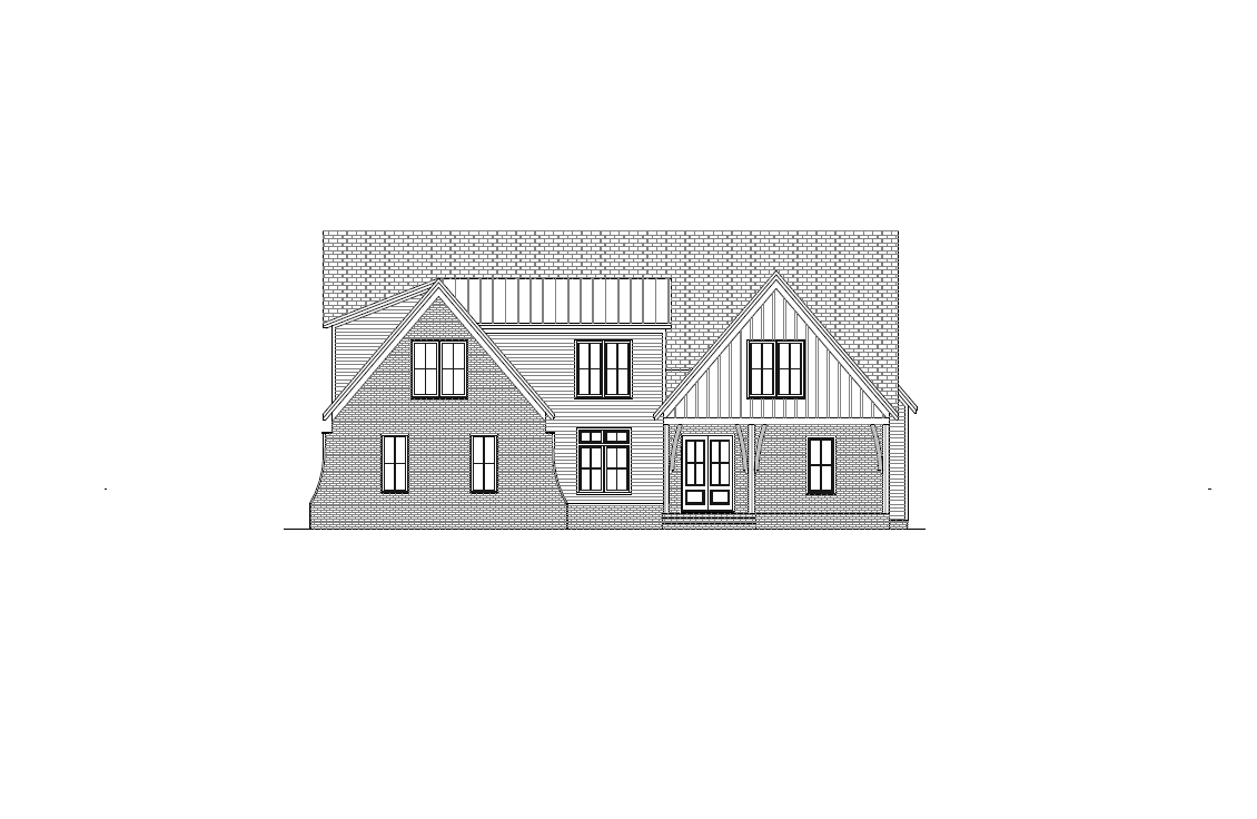 a modern suburban house with a charming and inviting atmosphere the brick exterior should be depicted in a warm beige color while the siding is in a soft pale cream the roof is shingled with a medium gray tone providing a harmonious contrast windows and doors are framed with crisp white accents the porch features elegant natural wooden beams in a rich chestnut brown the scene is set during a golden hour casting a gentle warm glow over the house with a clear blue sky subtly transitioning to hints of sunset orange and pink lush green grass surrounds the house enhancing the home s cozy and welcoming vibe architecture