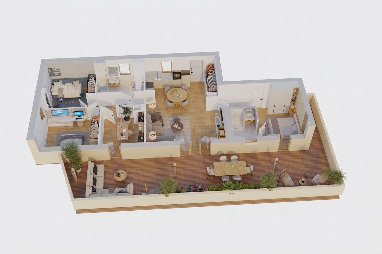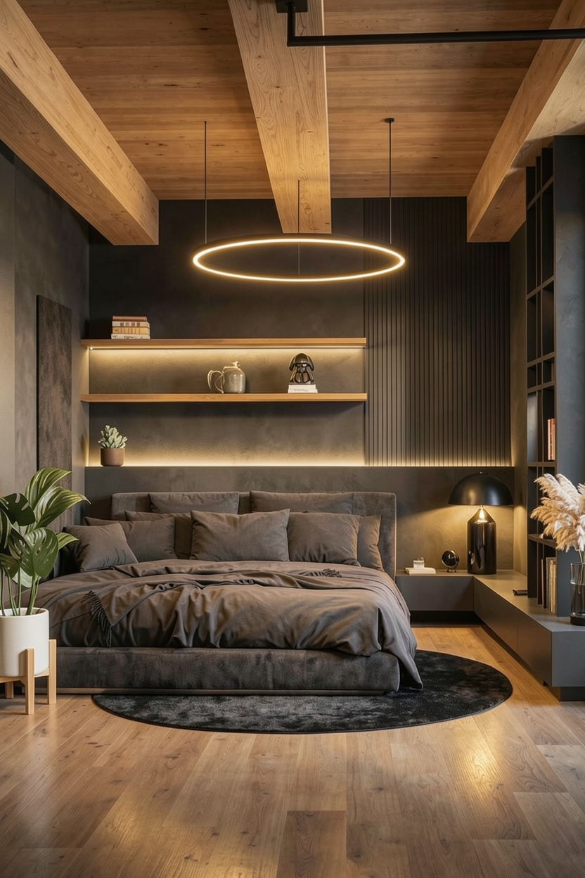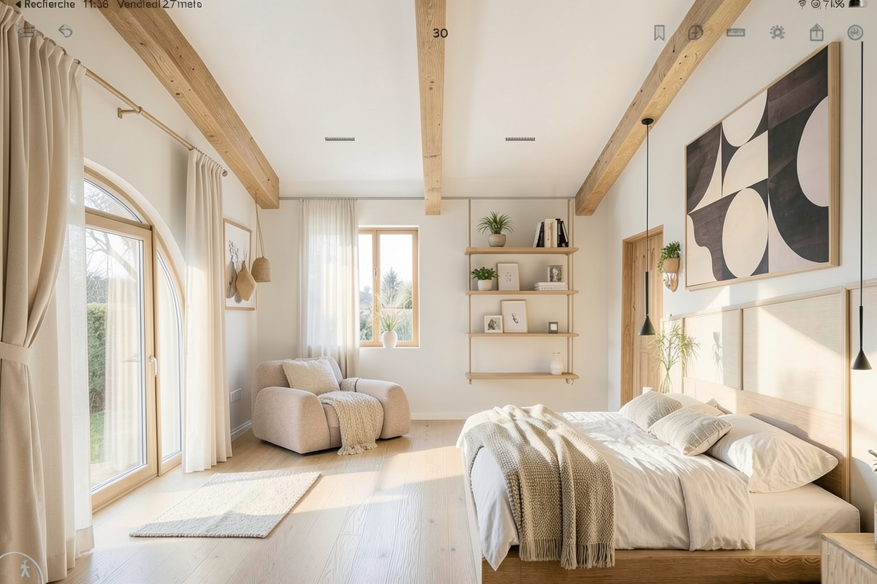 keep the exact design layout dimensions camera angle furniture placement wall positions floating desk position circular led wall detail doors ceiling spotlights flooring pattern and overall composition unchanged do not redesign anything make this render look like an ultra realistic high end interior photograph preserve the same soft warm creme ivory palette on the walls built in volume doors and surrounding surfaces keep the floating desk in the same light oak wood tone and keep the floor as light oak herringbone parquet with realistic natural wood grain subtle tone variation and a refined matte finish so both wood surfaces feel premium and believable enhance the large circular led wall feature so it looks elegant clean and naturally diffused with realistic glow soft light falloff and no harsh overexposure improve realism of all materials smooth painted walls crisp built in edges realistic wood texture on the desk believable floor reflection and more natural depth in the rug texture visible in the foreground keep the styling minimal and premium make the books and vase with dried branches feel more realistic but still very clean and uncluttered add soft realistic shadows better material definition and photographic depth while preserving the calm luxury atmosphere negative prompt do not change design do not change layout do not move furniture do not change desk shape do not change circular wall feature do not change door positions do not change flooring pattern do not change colors do not add furniture do not add decor do not redesign the scene no dark tones no clutter no exaggerated lighting no different wood color no composition change extra line only enhance realism material quality led glow realism and lighting softness while keeping the exact same interior setup
