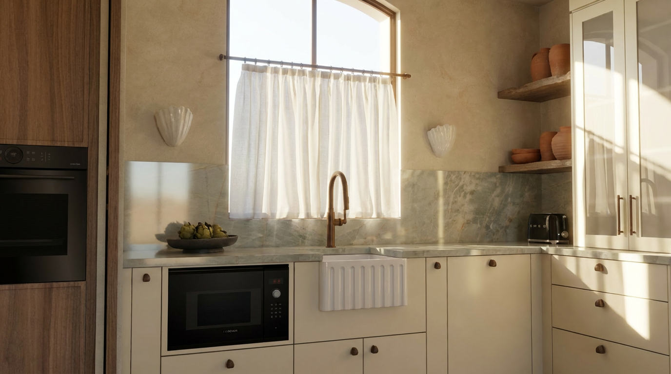 this is a sketch of modern sauna with big window an garden view benches made of abachi wood wooden walls made of cedar wood corner with a stove finished with limestone tiles on floor there are limestones complete the interior according to the sketch