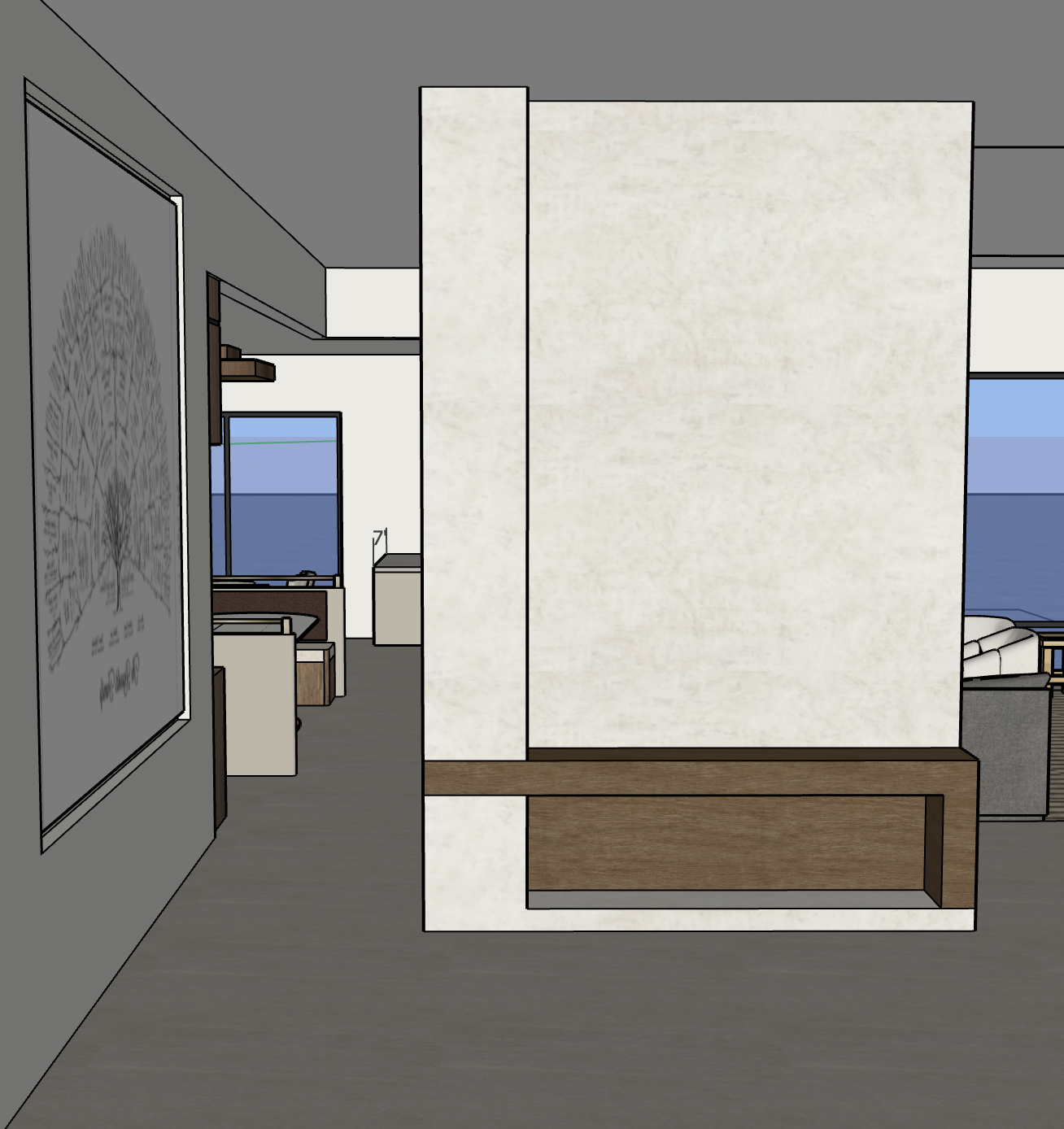 add lighting under bench and around art to left of photo