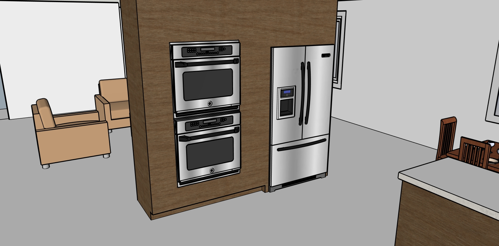 make it real with people in the kitchen and light colored hardwood flooring