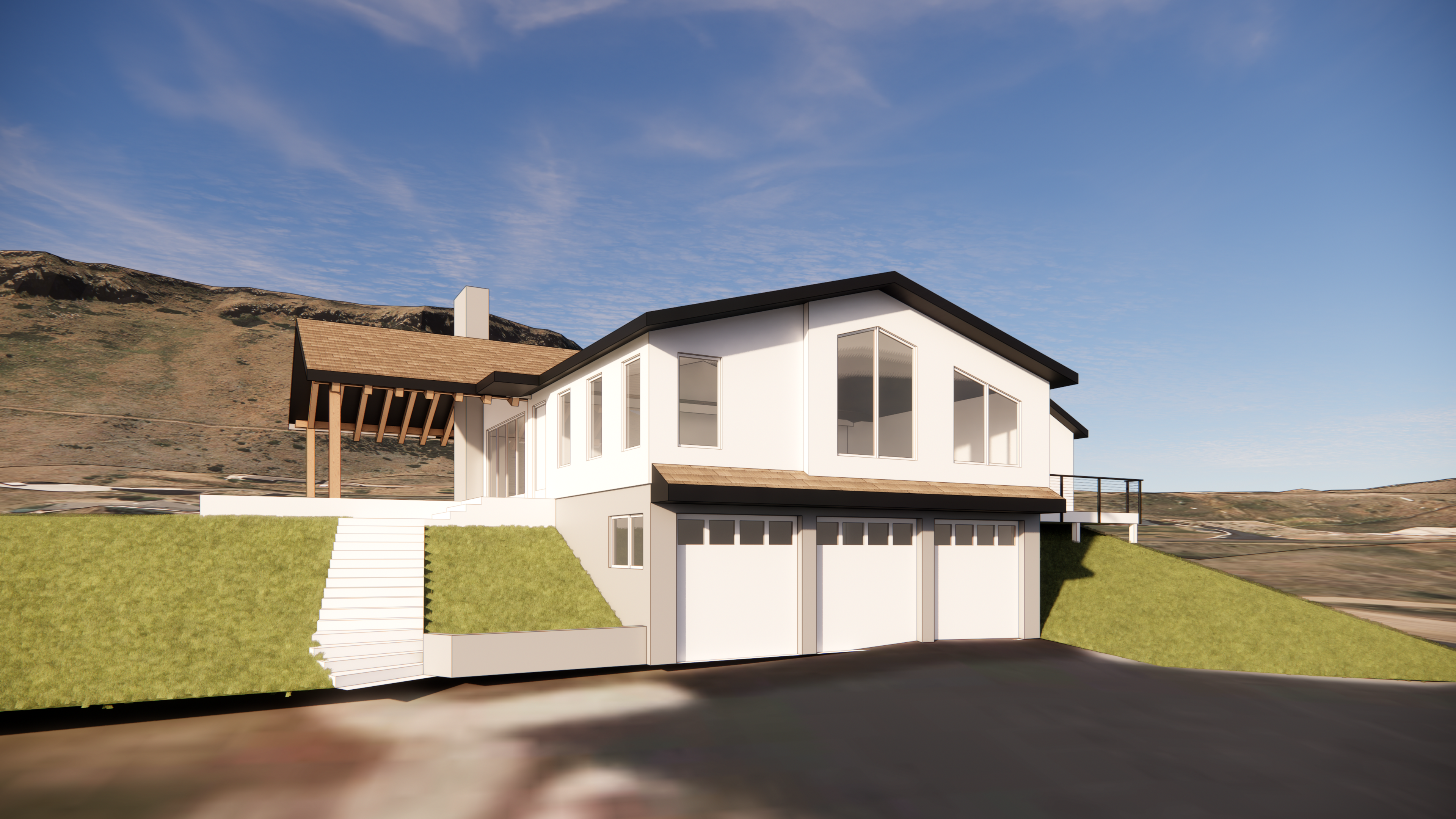 exterior shot stone base wood glass architecture