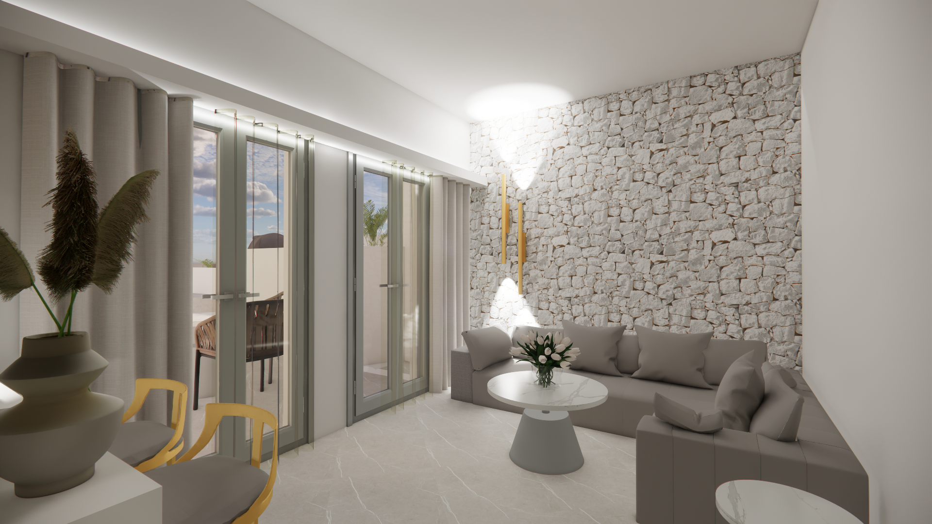 make the see through curtain more wide change the stone with more rounded stone