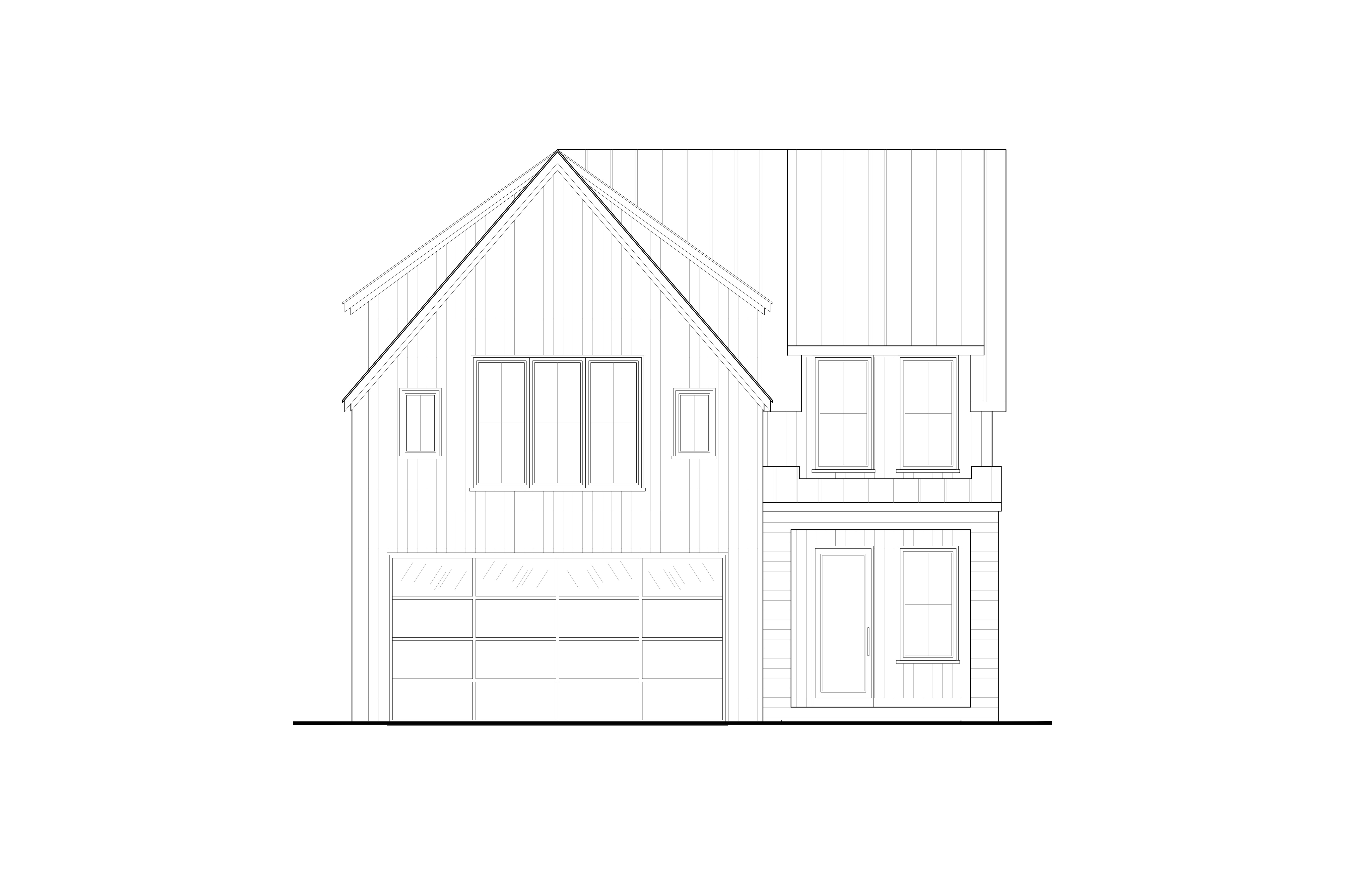 this is a lake house on a wooded lot this elevation is the road side and does not have a lake view the house is covered in vertical siding in a light cedar color the roof is standing seam metal roof in a light grey color