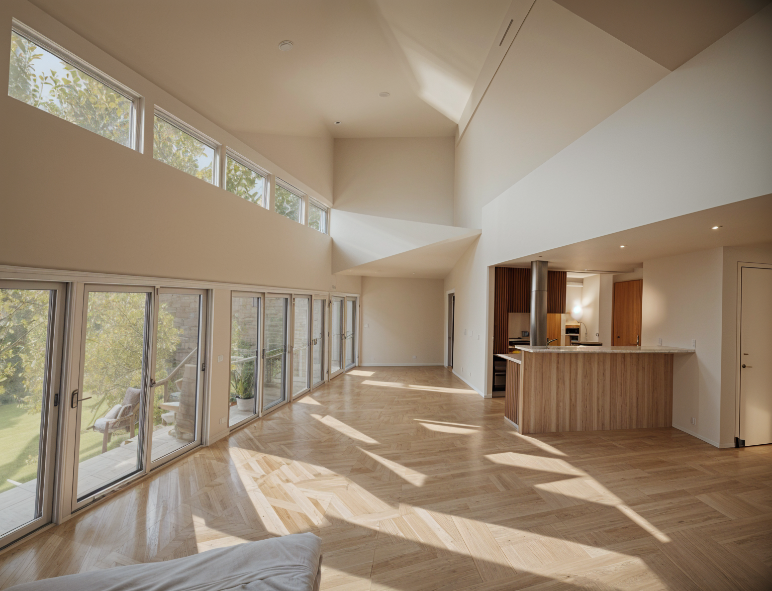 modern exterior shot a modern two story commercial building with large glass windows and sleek lines the exterior walls are painted a soft beige for an elegant look while the window frames and doors are a contrasting dark charcoal the roof and awnings are a crisp white to enhance the modern feel the ambiance is a serene sunny afternoon with a clear blue sky casting gentle shadows on the building for a warm inviting atmosphere architecture