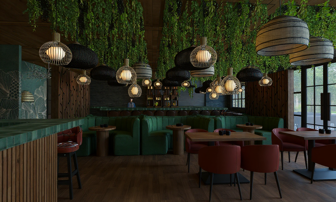 keep same colors curved bar lower and higher countertop add soft white lighting to room