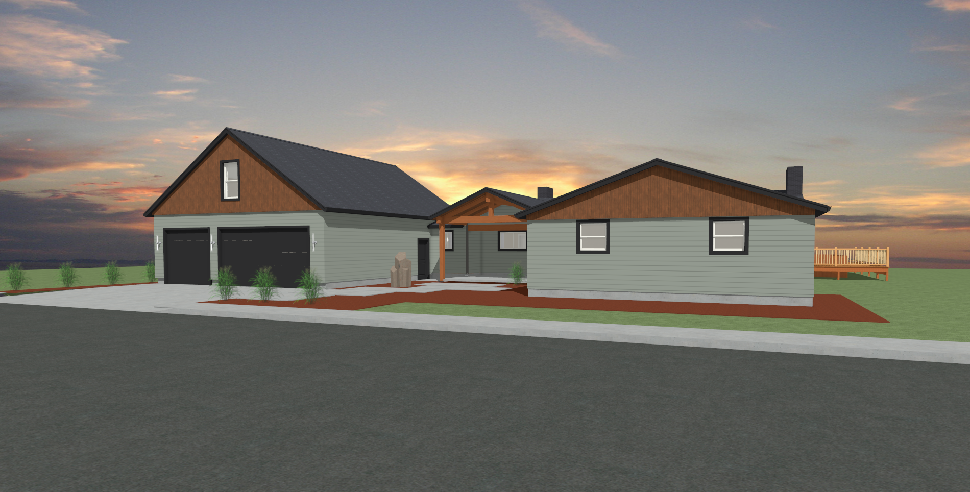pnw overcast sky tall fir trees in the background manicured lawn keep existing architectural details