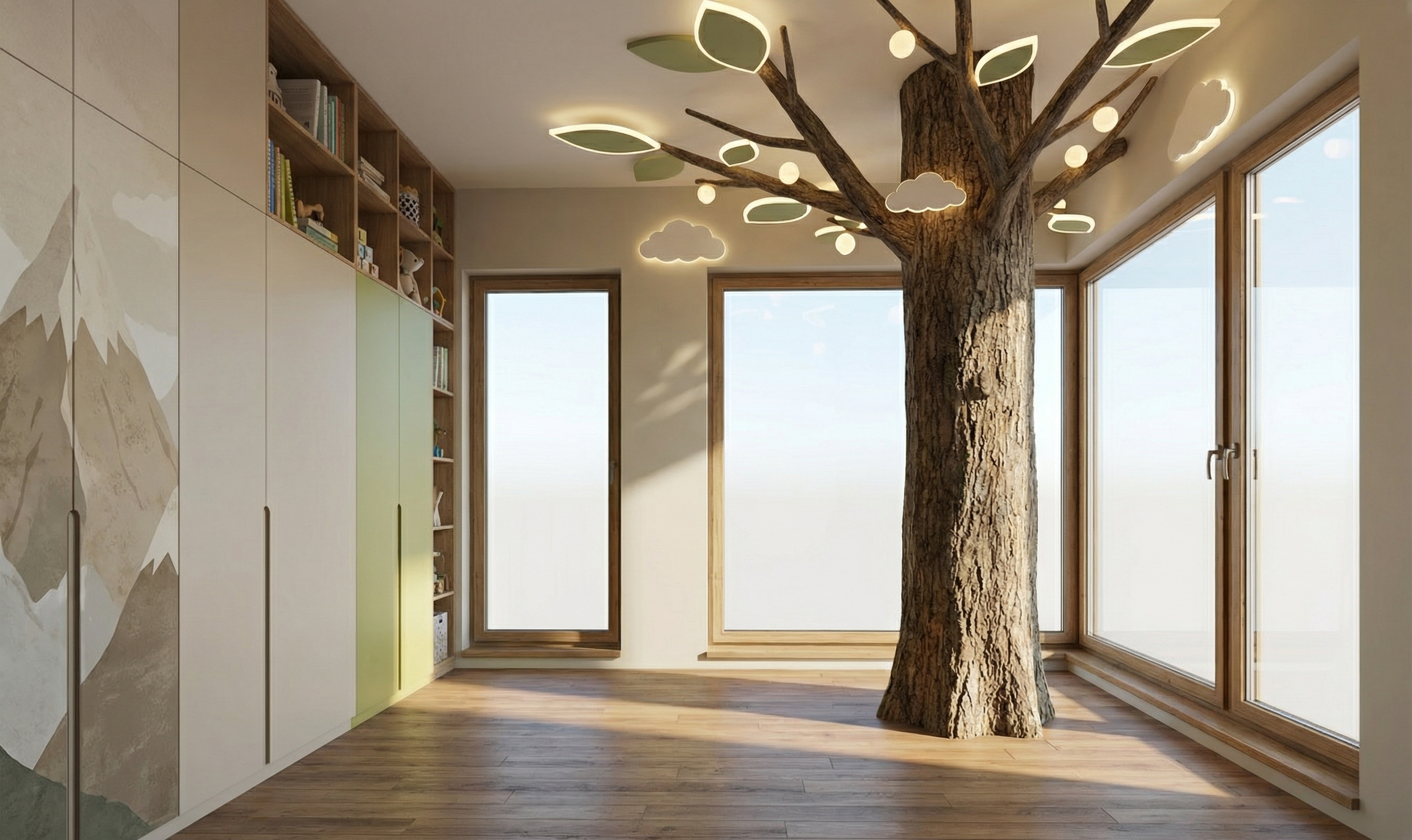 remove red text from the bottom of the picture beautiful clouds renovate all surfaces like a new building all surfaces with one tone of colors remove all electric wires remove all cars remove all trafic signs remove modern block from the right of the image remove green electrc column remove fence from the right of the image all windows frame in dark green corect perspective view lika a photorealistic arhitectural picture
