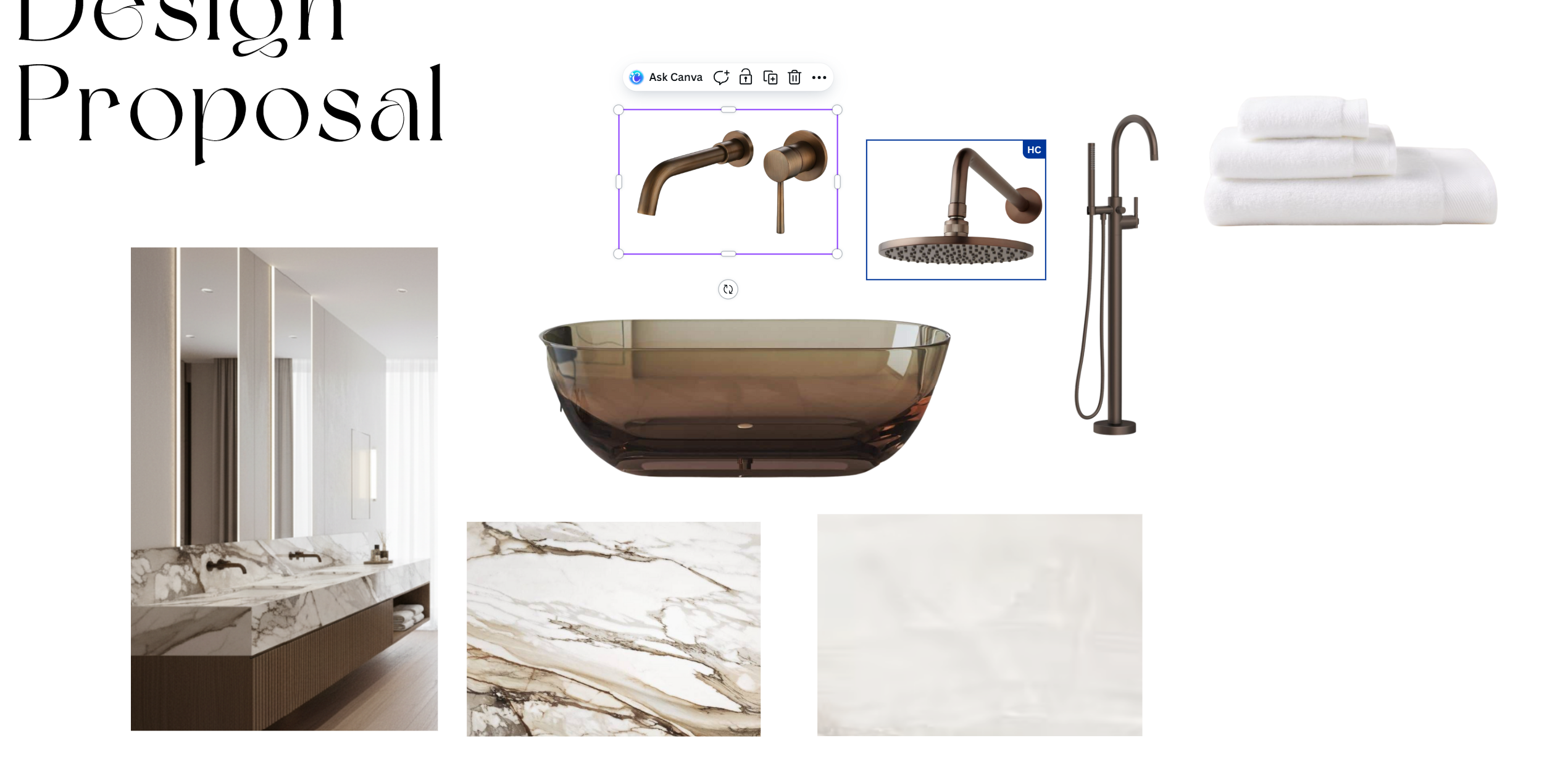 create a luxurious and modern bathroom design integrate a sleek marble countertop with soft brown and white veining feature a translucent brown glass vessel sink paired with elegant bronze fixtures for the faucet and showerhead the standing tub filler should also be in bronze adding a cohesive metallic touch include a stack of pristine white towels to enhance the clean refined atmosphere the background should feature soft beige walls and hardwood flooring in a warm walnut tone ensure lighting is subtle yet sophisticated with warm white illumination to create a serene and inviting ambiance