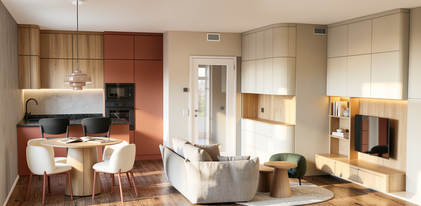 add vertical glass facade on top of the entrance between the apartment blocks