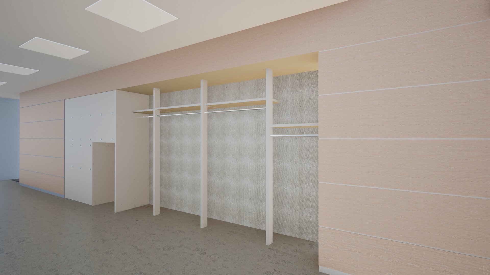 a modern minimalist bank lobby interior design beige lime stone matt ceramic flooring complements a light oak grained walls atmosphere is calm the lighting is soft but white do not add anything do not remove anything