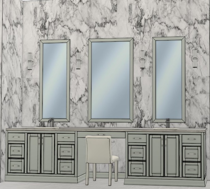the cabinets and mirror frames are painted farrow and ball pale powder blue